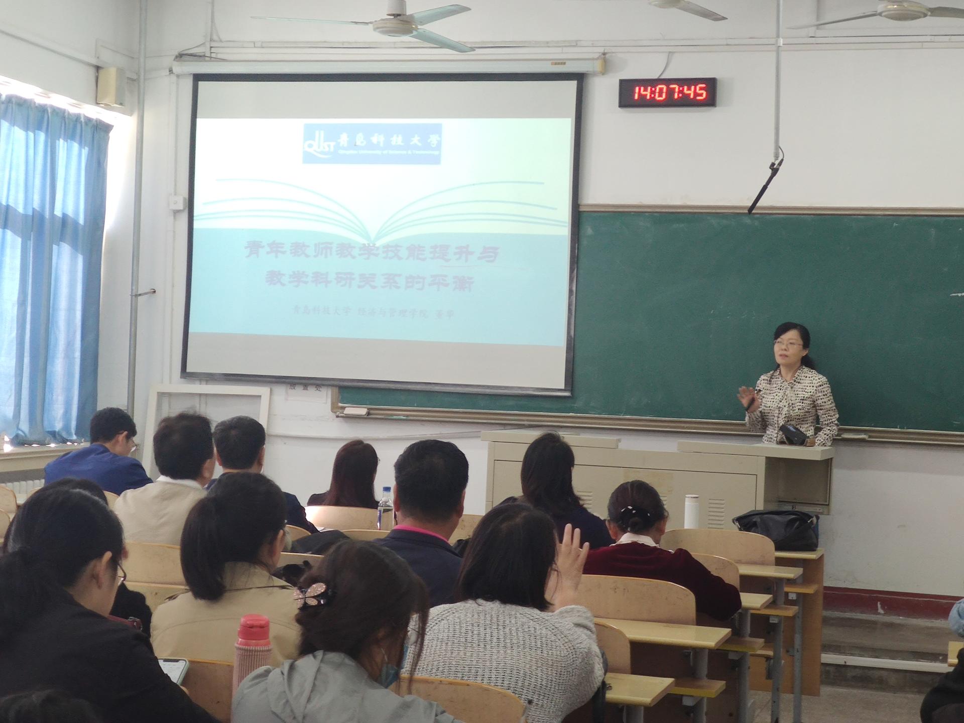 会议上,李院长首先对董华教授在教学和科研上取得的成果进行了介绍。随后,董华教授从青年教师站好讲台的重要性、青年教师教学技能提升的困难和路径、青年教师怎样平衡教学与科研的关系、一流课程和教学项目申报四个角度作了专题报告。董教授指出,教师作为影响和成就他人的职业,坚持“课大如天,学生第一”;教学技能提升坚持“学习-反思-突破”;教学与科研坚持“不抛弃、不放弃、善平衡”;并结合自身申报教学项目经历深入浅出的讲解了一流课程申报的方法技巧。最后,李院长在做总结时表示,董华教授为在座老师奉献了一场有高度、有力度、有深度的专题报告,董华教授的精彩分享让老师们充分意识到教师职业责任感和使命感。各位老师也会正视目前的现状,为老师们下一步教学与科研双向平衡指明了道路。