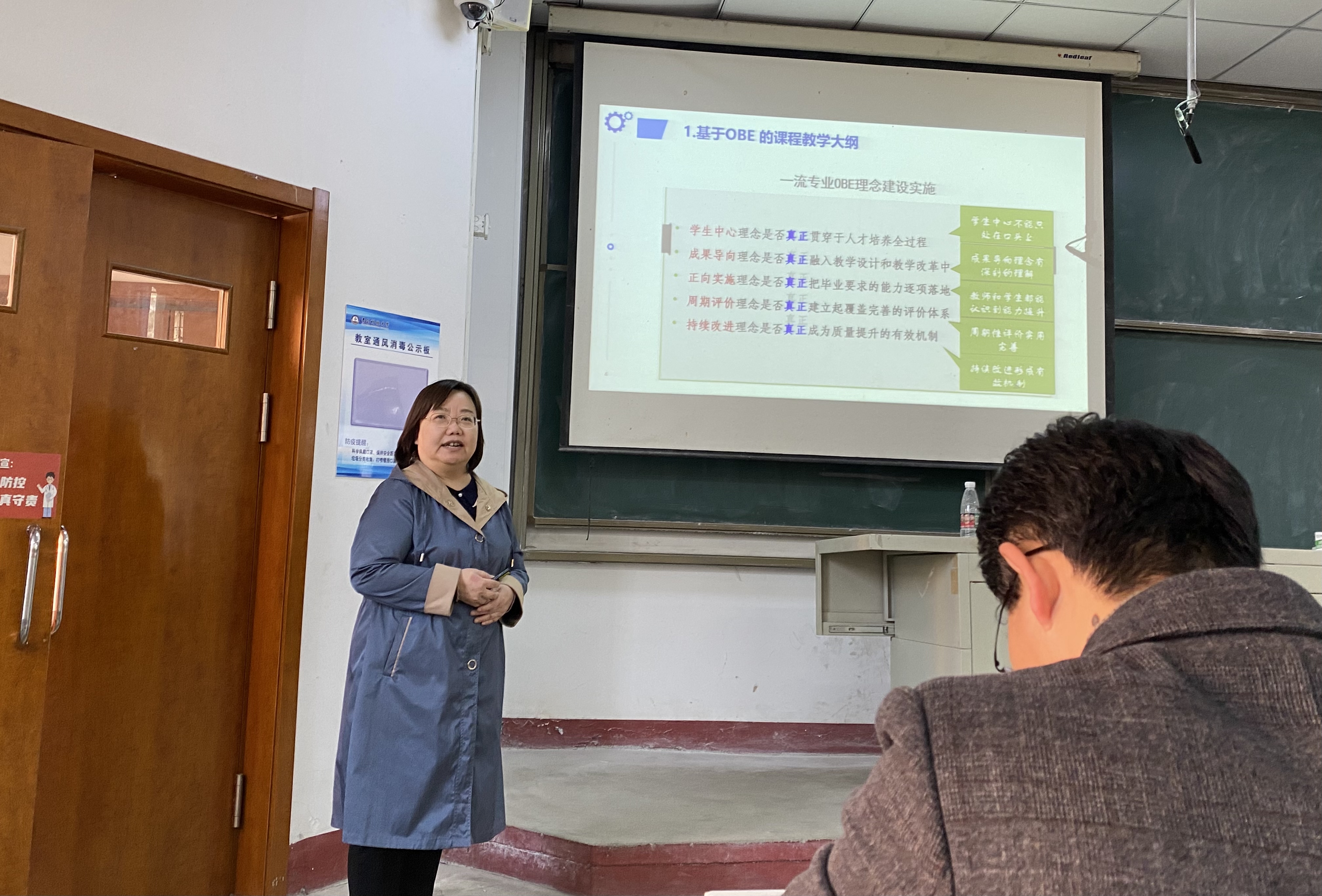 付平从基于OBE的课程教学大纲、教学内容、资源建设、教学模式、教学设计、考试评价六方面,对建设好一门一流课程需要开展的工作进行详细解读。她指出,一流课程建设要突出目标导向,突出学生中心,突出持续改进,注重能力培养,有效提升课堂高阶性、创新性、挑战度。要用新理念、新内容、新方法、新技术,努力去打造一流“金课”。李昉总结时表示,报告会干货满满,付平教授的精彩分享让在场人员更加意识到教师的职业使命感。各位老师要从课程入手,从教材入手,把教研立项搞好,在课程建设的实践中提高教学质量,助力学院专业建设高水平发展。