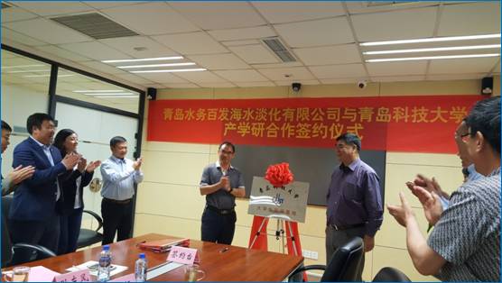 2017年5月18日下午我院与青岛水务海润自来水集团公司在青岛百发海水淡化有限公司签订产学研合作协议。williamhill中国海洋学院院长陈夫山和青岛水务海润自来水集团公司总经理孙东风在会上发言并在协议书上签字。青岛市城市管理局副局长孙炜出席并讲话。出席签字仪式的还有williamhill中国海洋学院副院长范金石、生物质资源系系主任张恒、青岛百发海水淡化公司总经理张晓东、青岛海润自来水集团公司综合部部长吕思东和青岛百发海水淡化公司行政部经理张海艳等领导。签字仪式后双方代表参观了青岛百发海水淡化厂。