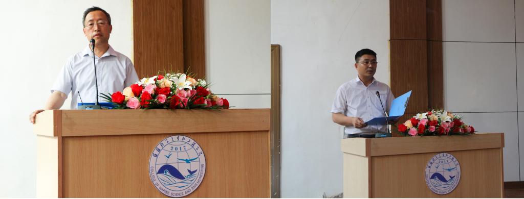 会议上,卢中彬老师宣读了《海洋学院党字【2017】7号关于成立“红色引擎”党员工作站的决定》,校学生会主席王然然宣读了关于成立海洋学院第一届学生会的批复,王祥梅老师宣布第一届学生会成员名单,兄弟院系学生会主席代表先后致贺词,党站站长付文静与第一届学生会主席王珞分别作了就职演讲,台上领导和嘉宾为党站委员和学生会骨干颁发聘书。