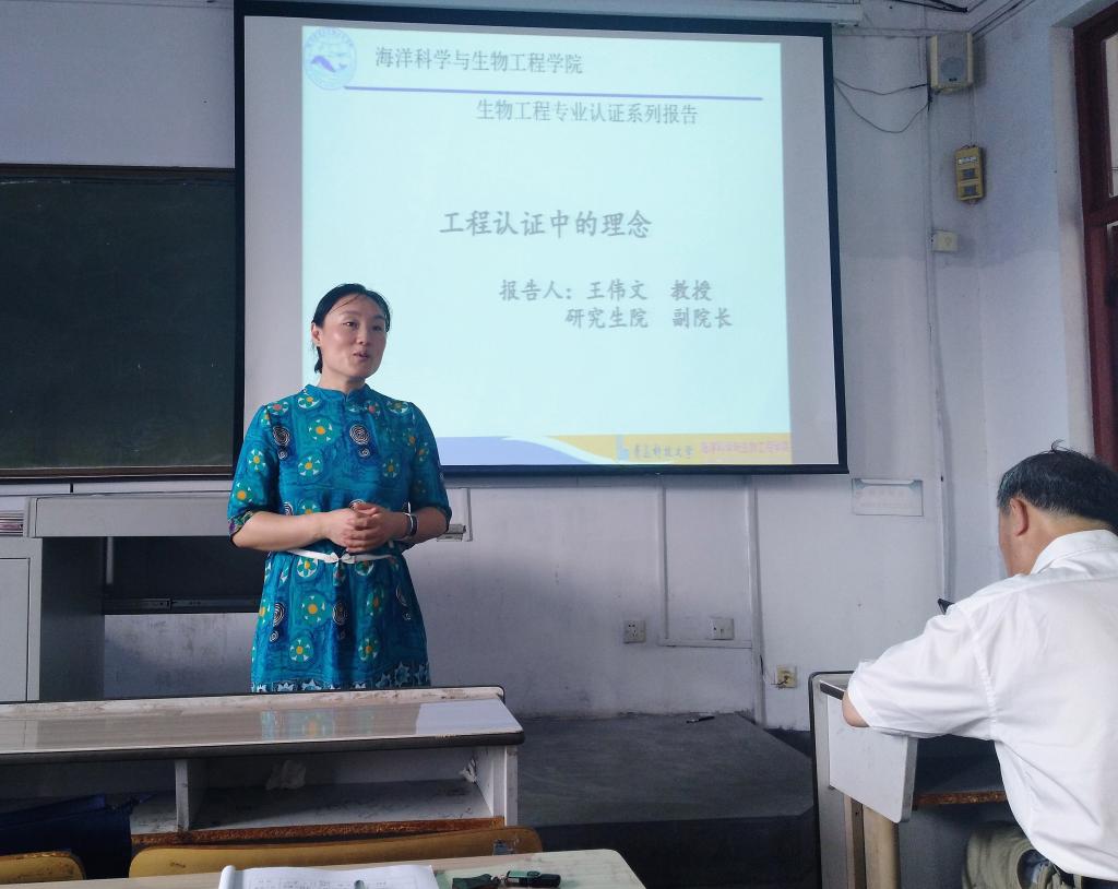 海洋科学与williamhill威廉希尔生物工程专业工程认证主题培训于2018年7月17日下午3:00在一教204举行。此次培训的主讲专家是王伟文教授,报告题目是“工程教育专业认证理念”。院长陈夫山、书记刘同刚、副院长李昉以及生物工程、食品和轻化工程的专业负责人、专业教师参加了此次培训。