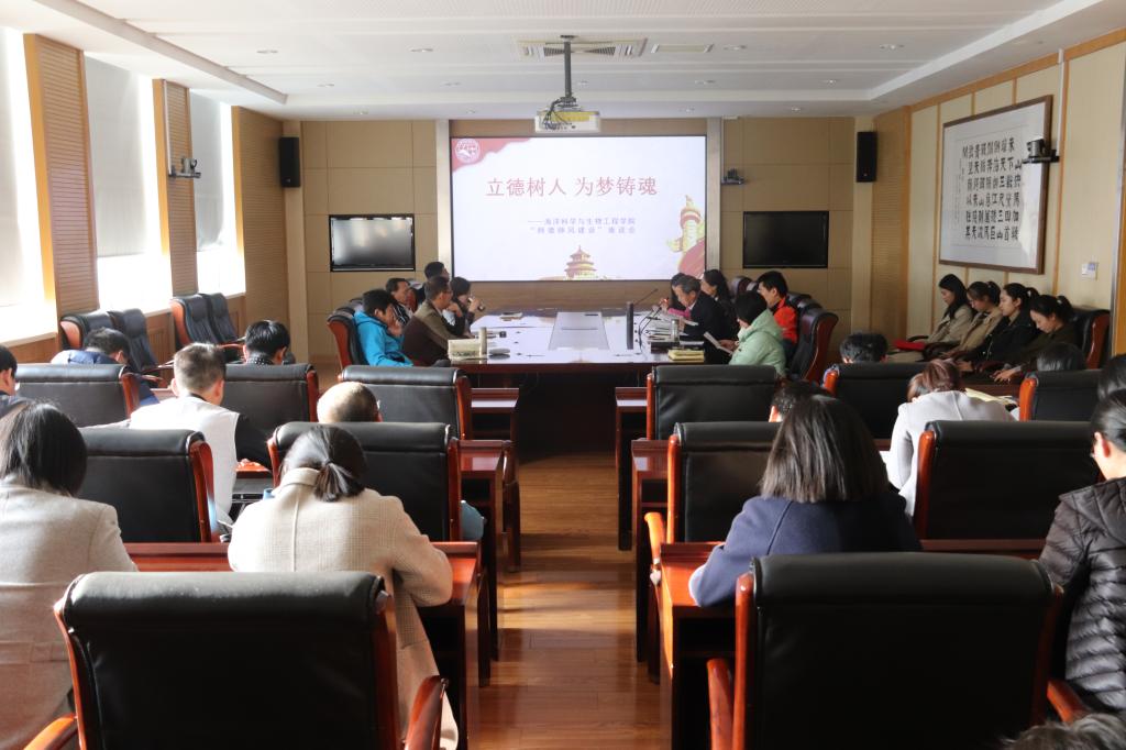 百年大计,教育为本;教书育人,师德为先。为贯彻落实《教育部关于全面落实研究生导师立德树人职责的意见》文件精神,积极响应学校开展的第十七届师德建设月活动要求,引导海院教师立德树人、为人师表,11月20号下午1:30,海洋学院在一号行政楼第一会议室召开了“立德树人,为梦铸魂”师风师德建设座谈会。