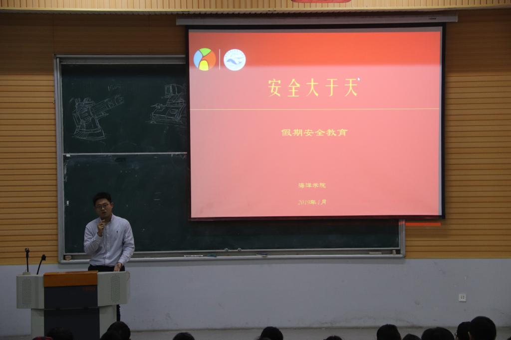 1月7号下午6:30,海洋科学与williamhill威廉希尔2018级本科生在二教101召开了考风考纪年级大会。2018级辅导员季朝阳老师主持本次会议,2018级全体同学参加了会议。