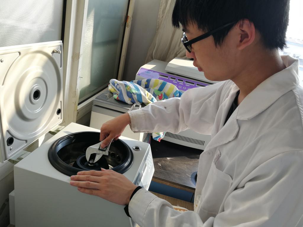 李同学还为大家讲解了实验室另一个安全隐患较大的仪器——离心机。离心机在使用时,会剧烈旋转,倘若操作不规范,离心机的转子很有可能飞出机体,对实验人员造成伤害,所以使用前必须检查转子牢固。