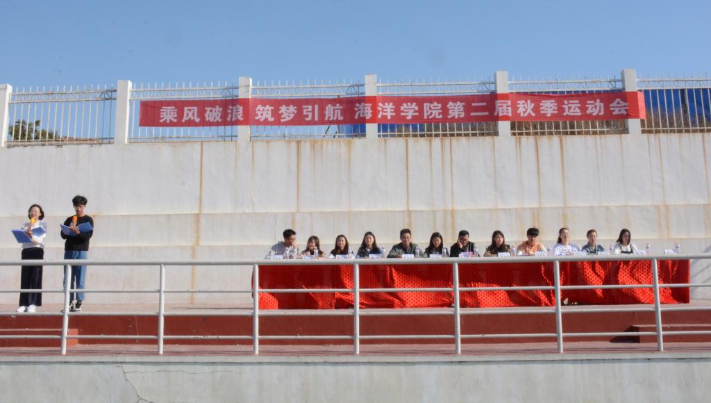 为全面贯彻党的教育方针,落实习近平总书记在全国教育大会上的重要讲话精神,培养“德、智、体、美、劳”全面发展的社会主义建设者和接班人,展示海院师生强健体魄和运动风采,10月23日下午1:30,海洋学院在四方校区东山操场开展了“乘风破浪,逐梦领航”主题文化活动。出席此次活动的有海洋学院2017级辅导员兼学生会秘书长杜宗杰、2019级辅导员刘璐、2016级辅导员刘金岭、2018级辅导员季朝阳及海洋学院学生会主席团。海洋学院2018级、2019级全体同学参加了此次活动。