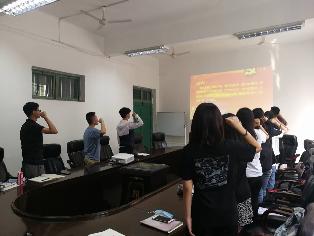 会议伊始,杜宗杰从入党流程、党史、党章和党支部改革四个方面逐渐深入论述剖析,给各位党员上了生动的一课。他强调,学生党员要从“被动”变“主动”,自主积极地规范开展三会一课、主题党日活动等,共同建设优秀的党支部。刘璐提到,各位党员不仅要在建党节这一天学习和感悟榜样精神,更要在日常生活中加强学习力度,并且将榜样精神落实到实际中。随后,魏成波发表就职演讲,他阐述了自己未来的工作计划,还对党支部的建设发表了有价值的意见,得到大家的广泛认可。而后,学生党员刘以媛带领全体党员重温入党誓词,庄严的仪式激起了各位党员的责任意识,震撼人心的誓词无形中提高了党员的政治觉悟。