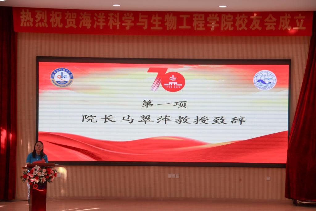 海洋学院院长马翠萍致辞,介绍了学院2017年4月成立以来,在教学、科研、人才培养等方面取得的成绩。