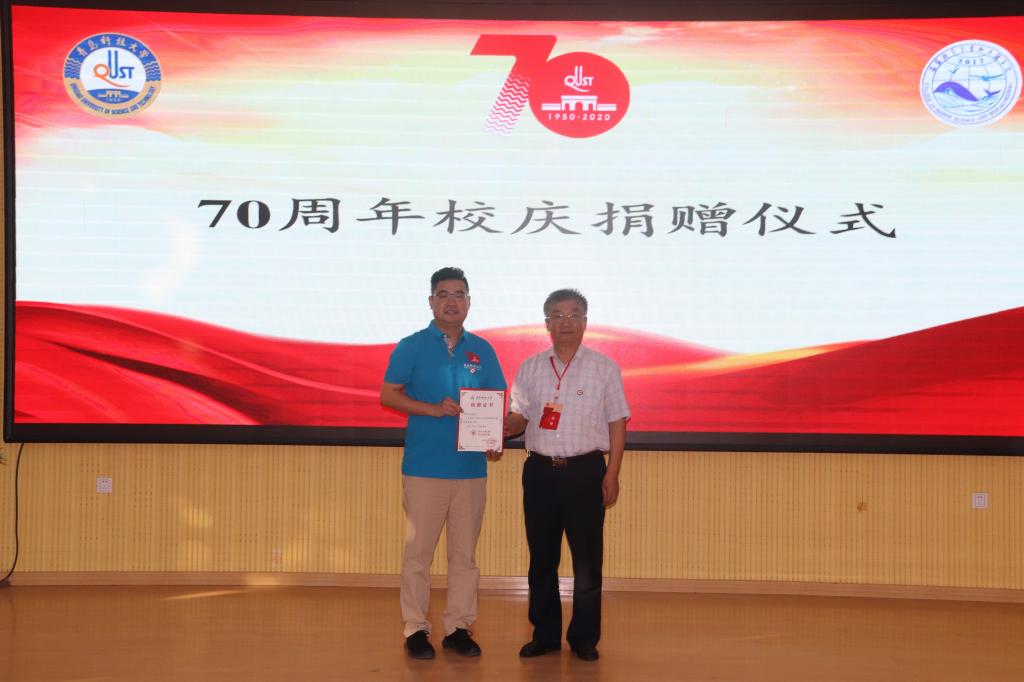 会后,周宪锋宣布海洋学院“惠”基金、“惟新”讲坛成立;聘请青岛绿色家园生物科技有限公司总经理宋江富、康耐森集团总经理蔡奎担任创新创业导师;向蔡奎颁发了向学校70周年校庆捐赠物资证书。