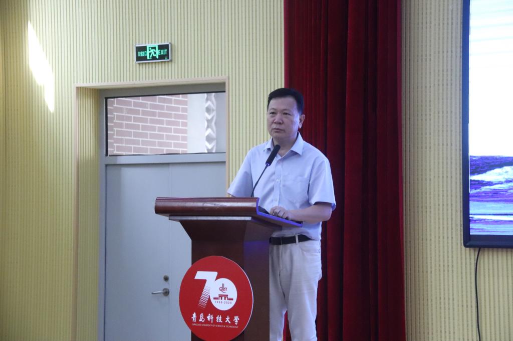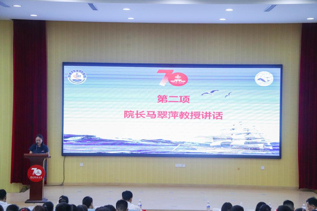 马翠萍代表全体教师和高年级同学,对2020级新生选择青科大、选择海洋学院表示热烈欢迎,并介绍了学院2017年成立以来在人才培养、科学研究等方面取得的成绩。