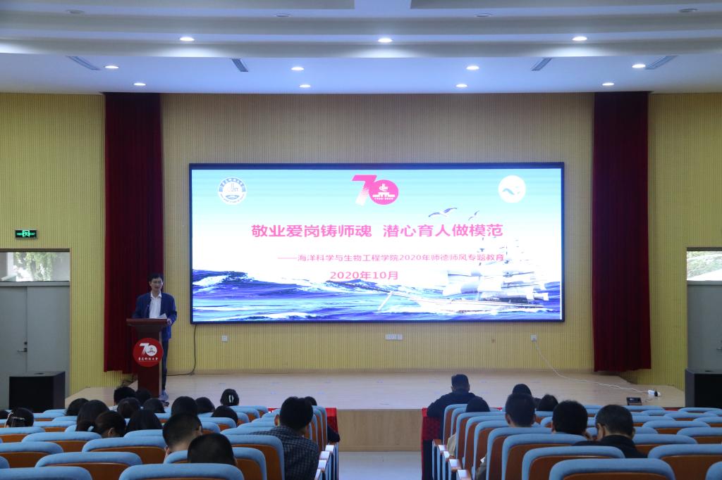 10月6日下午,海洋科学与williamhill威廉希尔在尚舜讲学厅开展“敬业爱岗铸师魂,潜心育人做模范”2020年师德师风专题教育,学院党政领导班子及全体教师参加。党总支书记周宪锋主持活动。