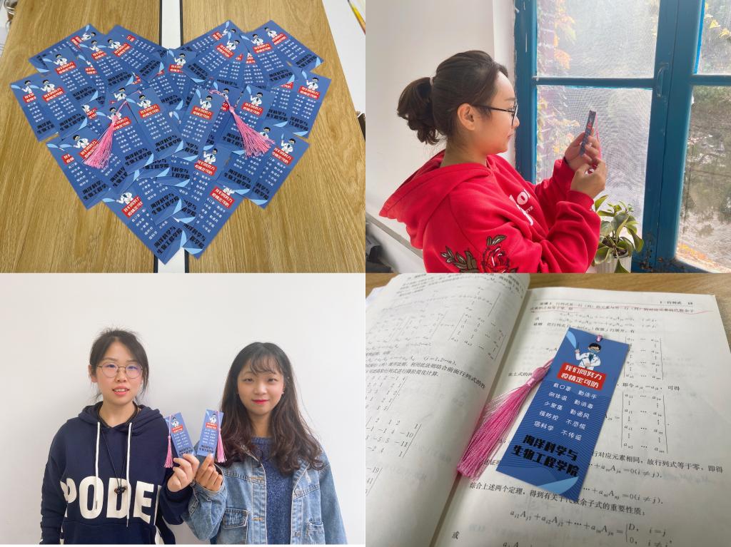 制作疫情防控指南书签,疫情防控知识入手入脑入心。学院为每位学生精心制作了2个疫情防控指南版书签,内容为“戴口罩、勤洗手、测体温、勤消毒、少聚集、勤通风、强防控、不恐慌、信科学、不传谣”,书签方便携带,内容朗朗上口,做到疫情防控知识入手入脑入心。