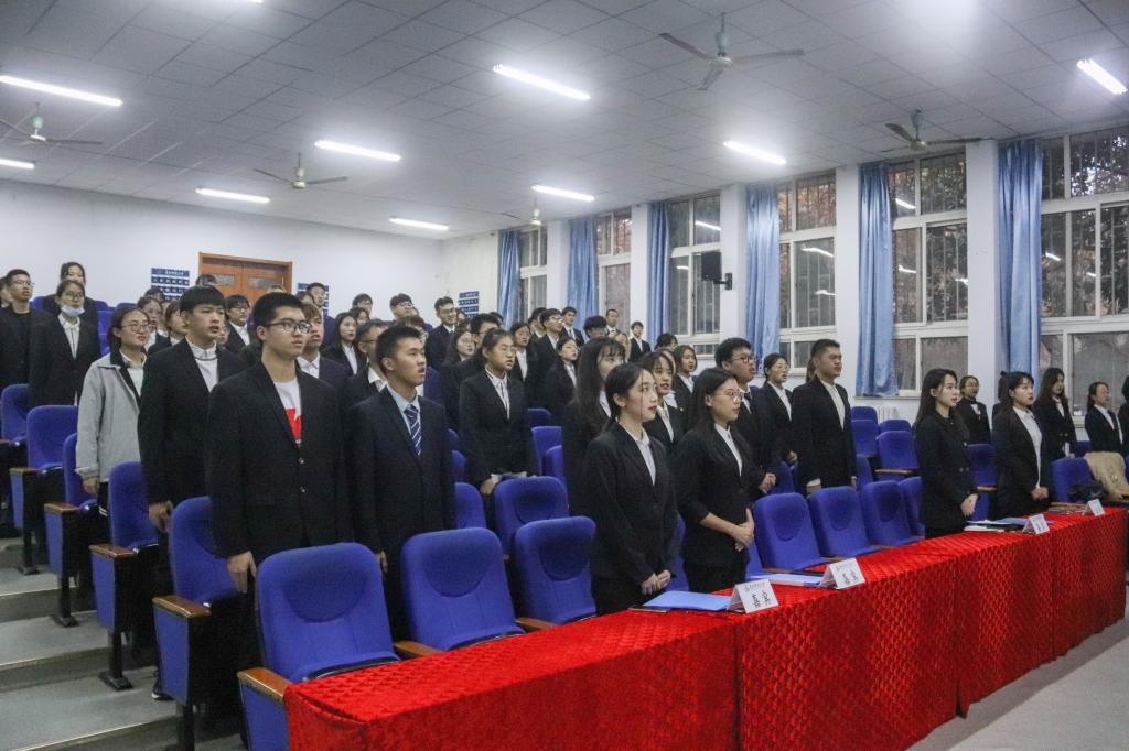 会议在庄严的国歌声中拉开序幕。会议第一阶段,2017级辅导员杜宗杰在大会上宣读开幕辞,表达对各位来宾的欢迎。杜宗杰在会上全面总结了学院过去一年的工作和成就,并表达了对学院未来发展的信心与期望。