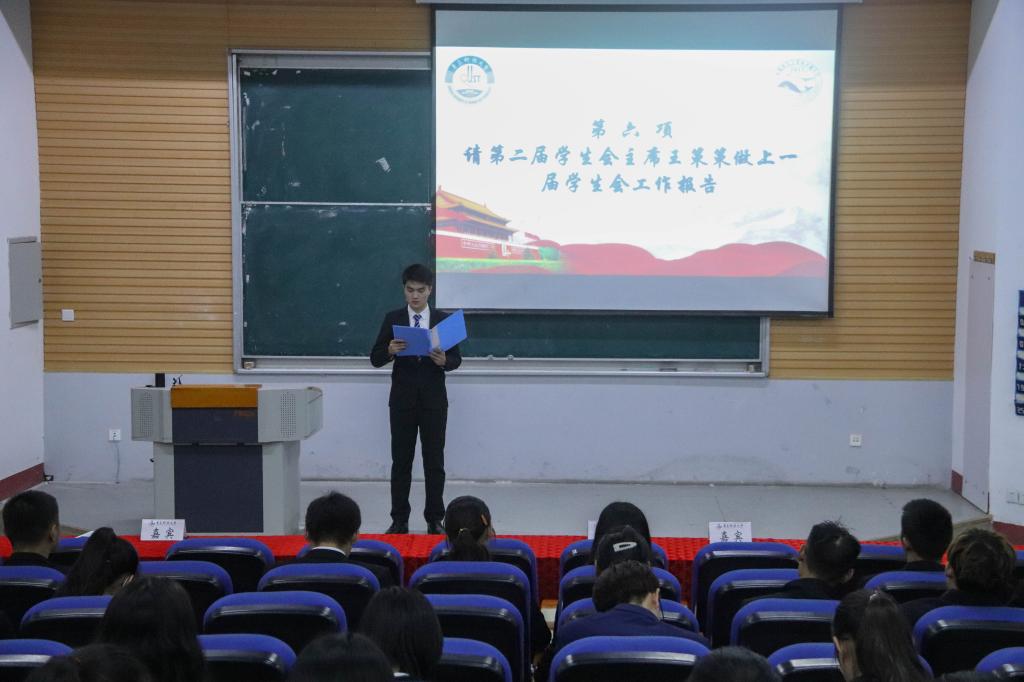 会议第二阶段,王策策从思想引领、组织建设、学生工作三个方面展示了学院上一学年取得的优良成绩,他望新一届学生代表可以为学院开创一片崭新的天地,在新阶段切实有效地推动学院学生工作的全面建设。