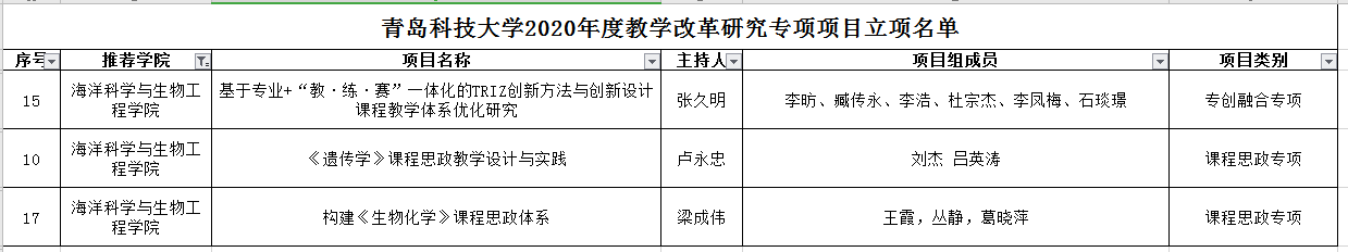 近日,学校对2020年度校级教学改革研究项目立项名单进行公示,海洋学院获批4项,其中,重点项目2项,面上项目2项。