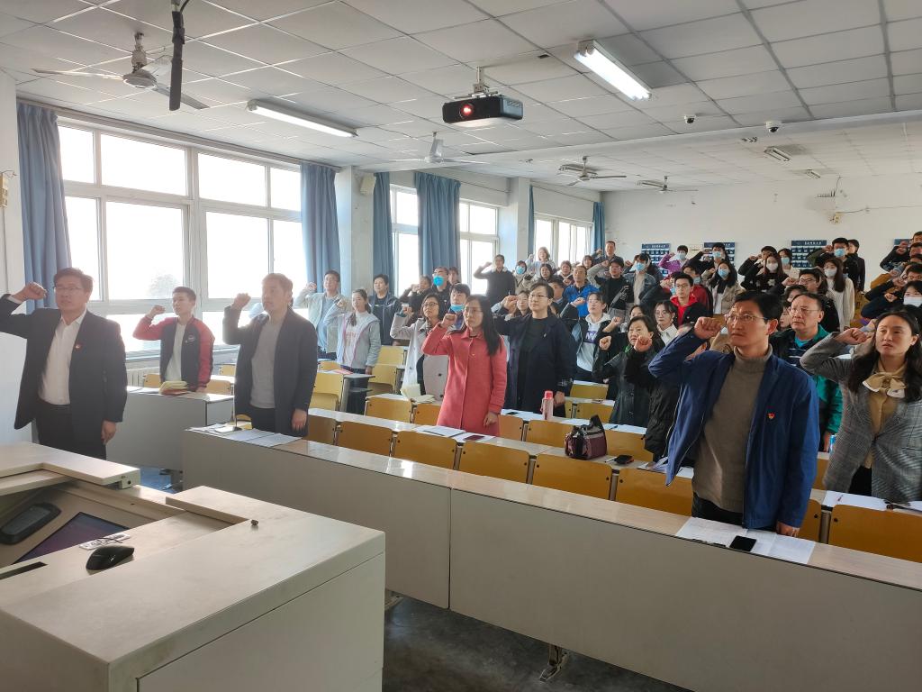 全体党员重温入党誓词。