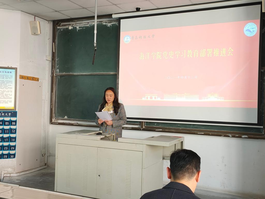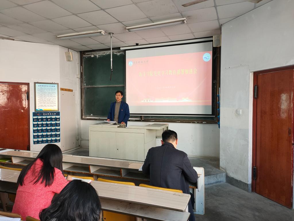 4月14日下午,海洋学院党总支党史学习教育部署推进会在一教201举行,学院全体党员参加会议。会议由党总支副书记臧传永主持。