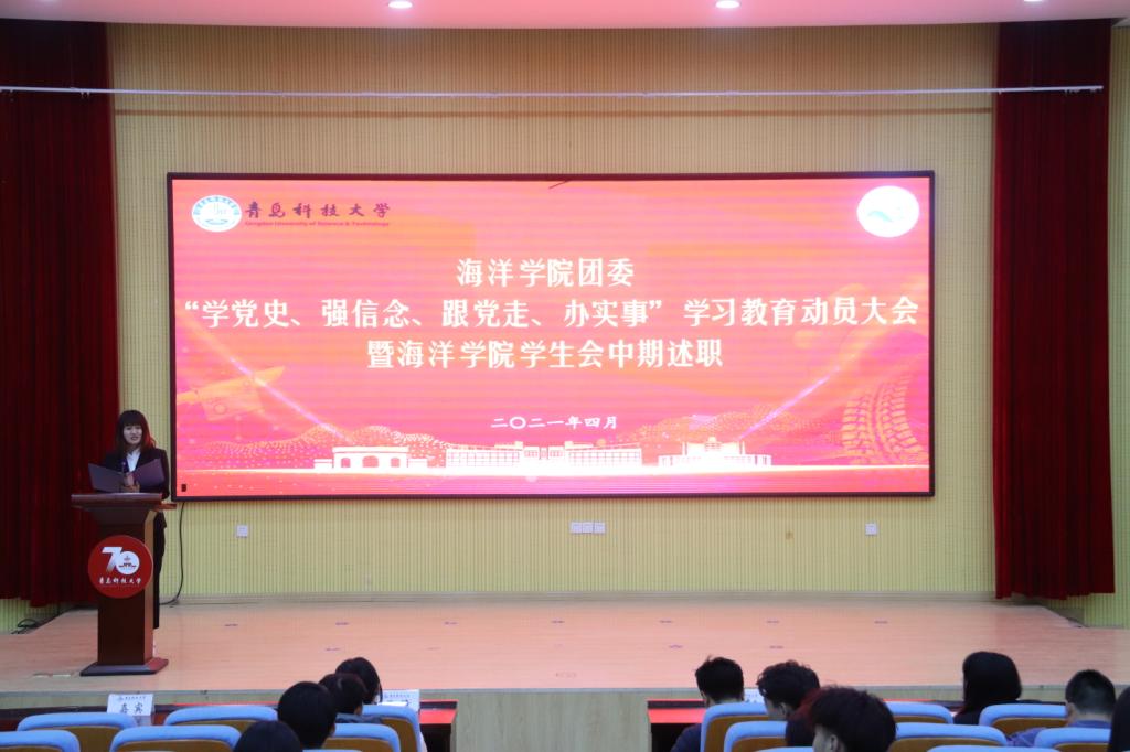 近日,海洋学院“学党史、强信念、跟党走、办实事”学习教育动员大会暨学生会中期述职会在尚舜讲学厅举行。海洋学院团委书记李浩、专兼职老师、班长团支书、学生会成员和志愿者参与本次会议。