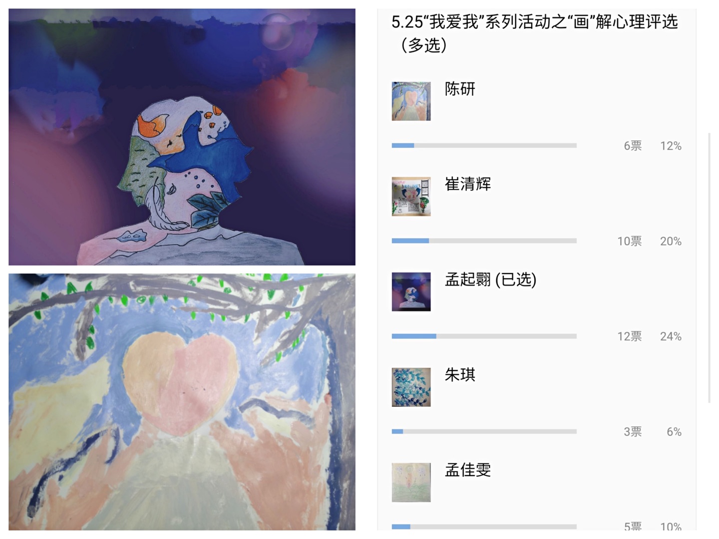 用行为吐露真心,用纸笔“画”解心情。为培养同学们良好的个性心理品质,增强同学们心理健康理念,海洋学院开展“画”解心情绘画征稿比赛,并于微信公众号进行投票、展示。学生们可以通过绘画缓解心理压力,从绘画中获取生活的乐趣,抒发内心的真实情感,维护心灵的纯净。