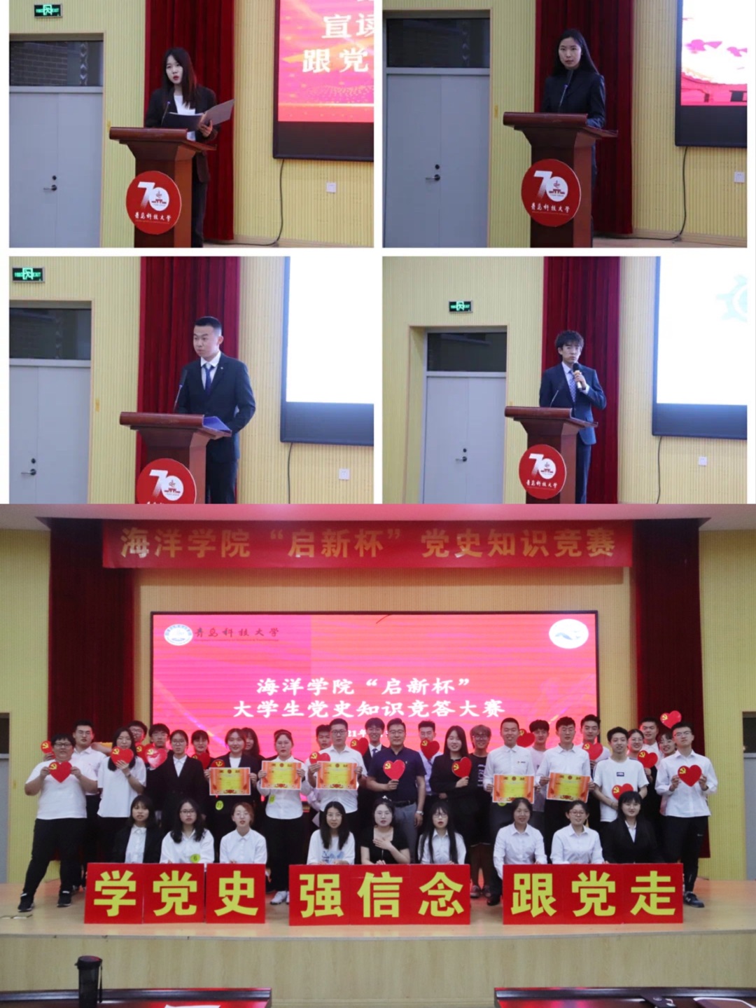 学践结合,促进高质高效学。海洋学院组建“永远跟党走”党史学习教育班,研读《中国共产党简史》等著作,对广大师生党员思想“再充电”、精神“再补钙”。开展“启新杯”大学生党史知识竞赛,以学促思、以学促行,加大党史学习教育的力度、深度和广度,不断增强“四个意识”、坚定“四个自信”、做到“两个维护”,切实提高开展党史学习教育的思想自觉、政治自觉和行动自觉。