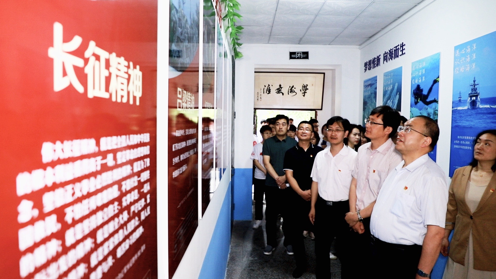海洋学院“红色引擎”党员工作站站长、兼职辅导员姜小凡对工作坊红色文化长廊内容作了介绍。与会人员就进一步做好团学工作进行交流。海洋学院将秉承“以德立人、以智启人、以体育人、以美化人、以劳塑人”理念,管好用好该阵地,为学生成长成才成人创造良好条件。