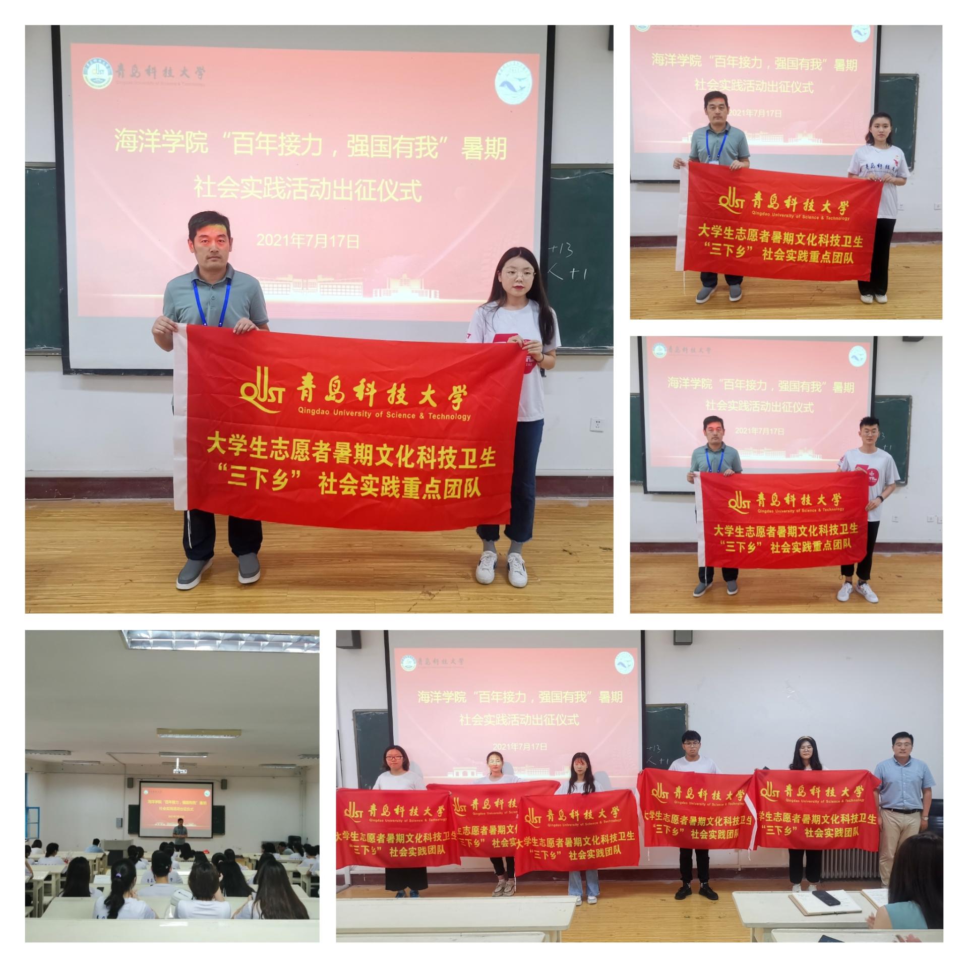 7月17日下午,海洋学院“百年接力、强国有我”暑期社会实践出征仪式在一政243举行,学院党总支副书记兼副院长臧传永、团委书记李浩、副书记杜宗杰、2020级辅导员刘金岭及学生代表出席仪式,学院领导班子与成员亲切合影,仪式由2018级兼职辅导员王倩主持。