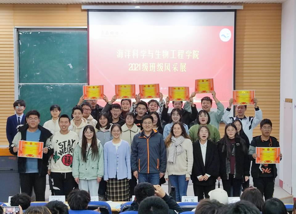 为推进学院文化建设,培养学生集体意识,塑造优秀班风学风,增强班级凝聚力,海洋学院于11月12日晚在二教101举办“破浪引航”班级风采展活动。海洋学院学工办主任兼团委书记李浩,学生工作处巴合提努尔,2021级辅导员吕珊珊,学生会主席团成员及海洋学院2021级全体新生参加本次活动。
