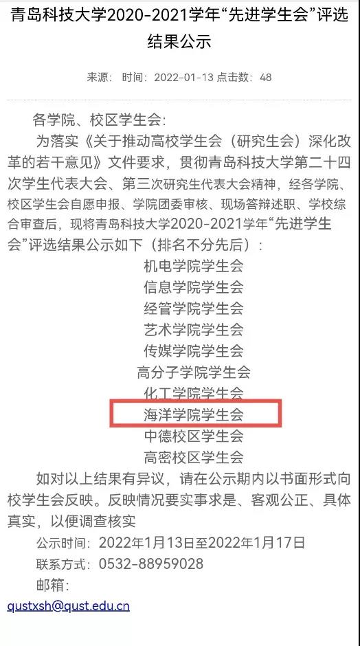近日,学校对williamhill中国2020-2021学年“先进学生会”评选结果公示,海洋学院学生会荣获williamhill中国2020-2021学年“先进学生会”荣誉称号。