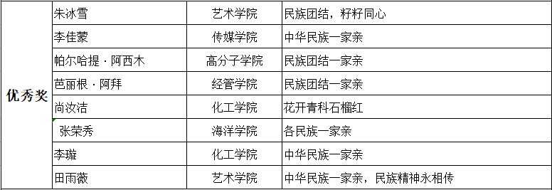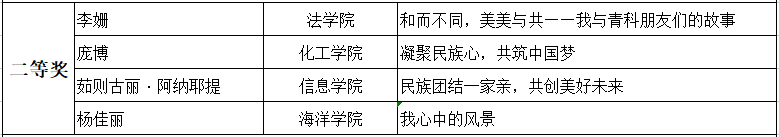 根据《2022年第四届“民族团结一家亲”主题活动的通知》(青科大学字〔2022〕9号)要求,海洋学院积极组织,号召学生参与活动。经学院(校区)推荐、资格审核、学校评审,海洋学院轻化211班杨佳丽荣获“讲好民族团结故事 铸牢中华民族共同体意识”征文比赛二等奖、生物212班张荣秀荣获优秀奖;海洋学院学工办主任兼团委书记李浩荣获“征文比赛优秀指导老师”。