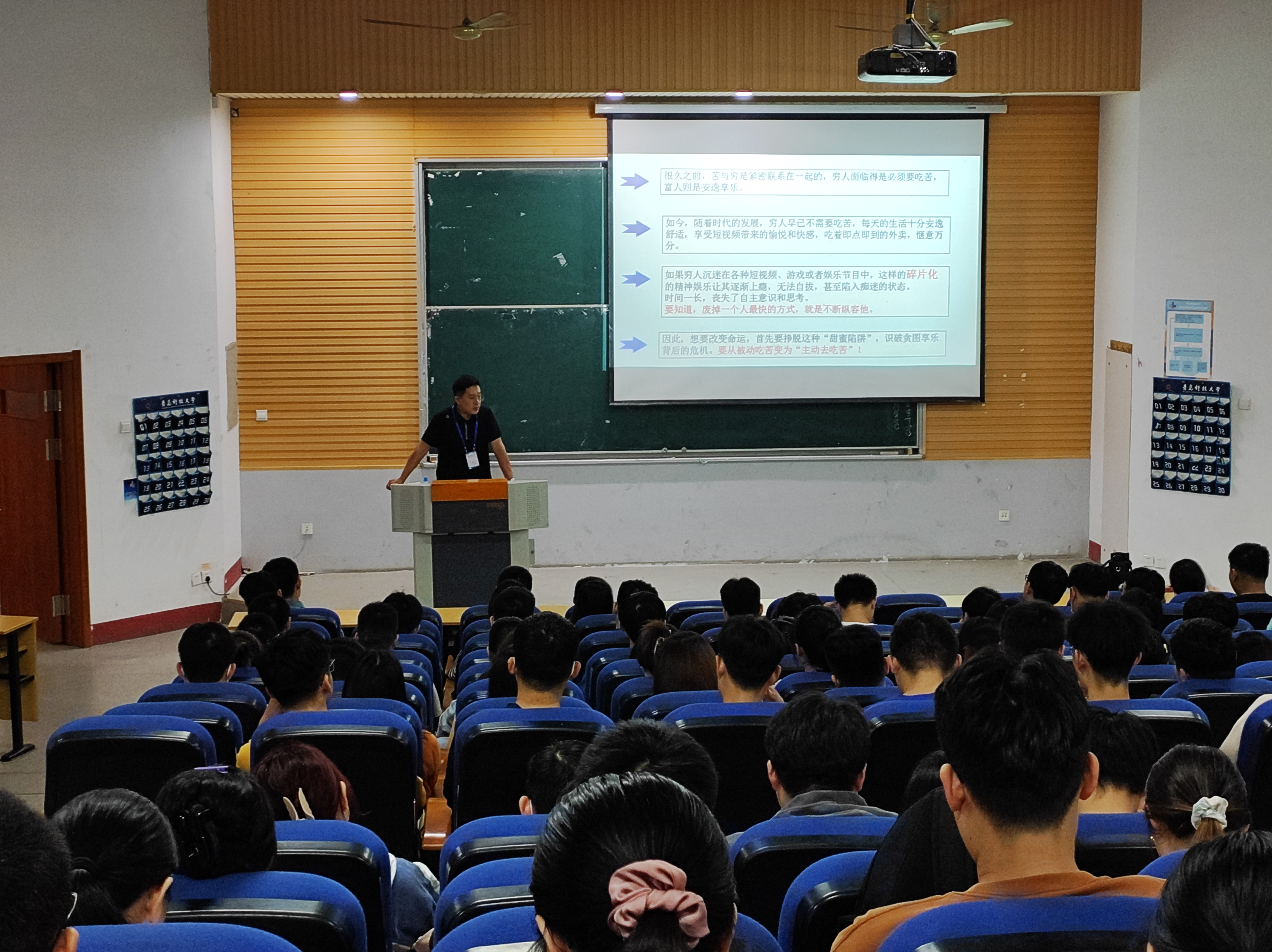 在第一课中,李浩结合19级学生实际情况,以“在‘自讨苦吃’中磨砺人生”为题,激励大家要从“被动吃苦”变为“主动去吃苦”,吃学习、自律、劳动、思考、坚持的苦,以坚毅的恒心增进毅力,在考研征程中披荆斩棘,一战成硕。随后李浩围绕从“考研形势分析”、“疫情防控管理及日常事务”、“开展学生宿舍(公寓)环境卫生集中整治工作”三个重点工作进行讲解。重点强调全体学生要严格服从学校疫情防控管理要求,及时参加学校组织的核酸检测,认真完成每日打卡,做好个人防护,按照学校学生宿舍环境卫生集中整治工作的具体要求,保证宿舍内干净、整洁。