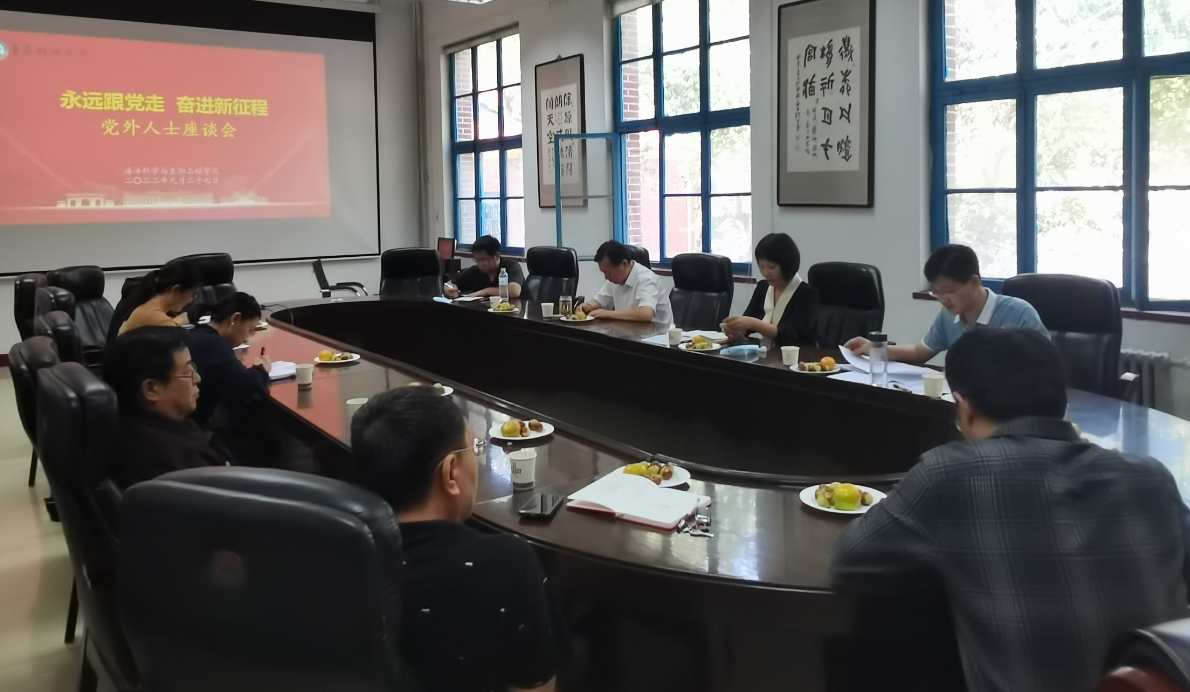 9月27日,“永远跟党走 奋进新征程”党外人士座谈会在四方校区举行。学校党委常委、统战部部长秦姣出席会议,学院党总支统战委员、工会主席李高宁,青岛市政协委员、侨联副主席、学院知联会会长王家林教授,各民主党派、学院知联会部分教师代表参加会议。学院党总支书记周宪锋主持会议。