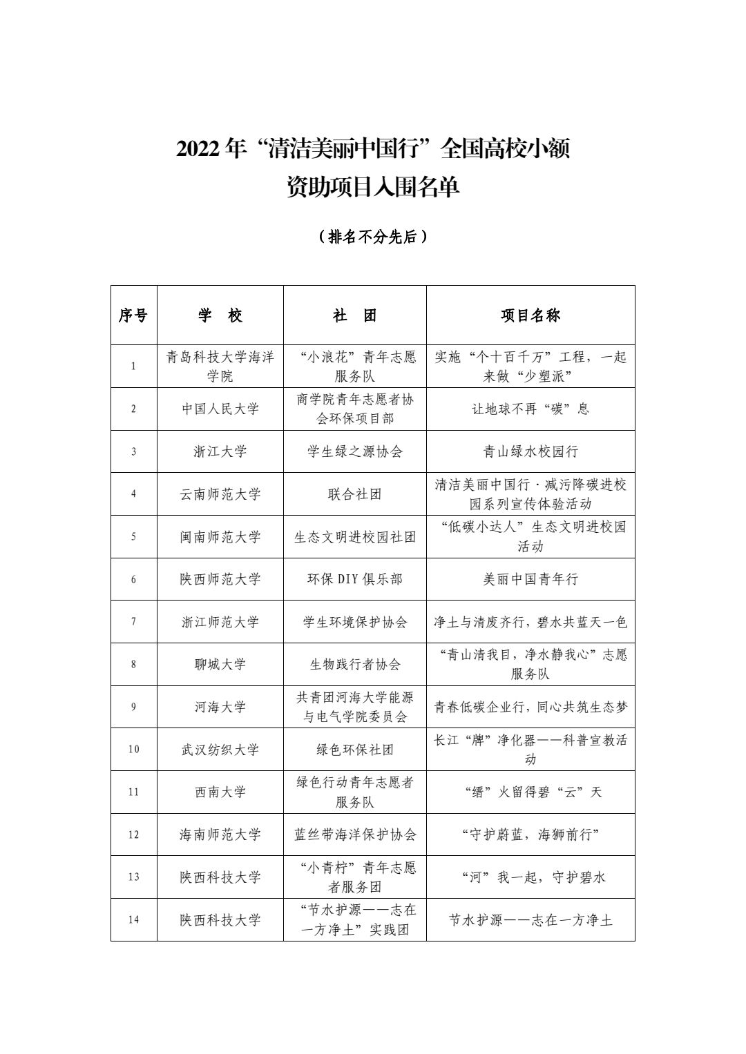 【海洋荣誉】海洋学院入围2022“清洁美丽中国行”全国高校小额资助项目