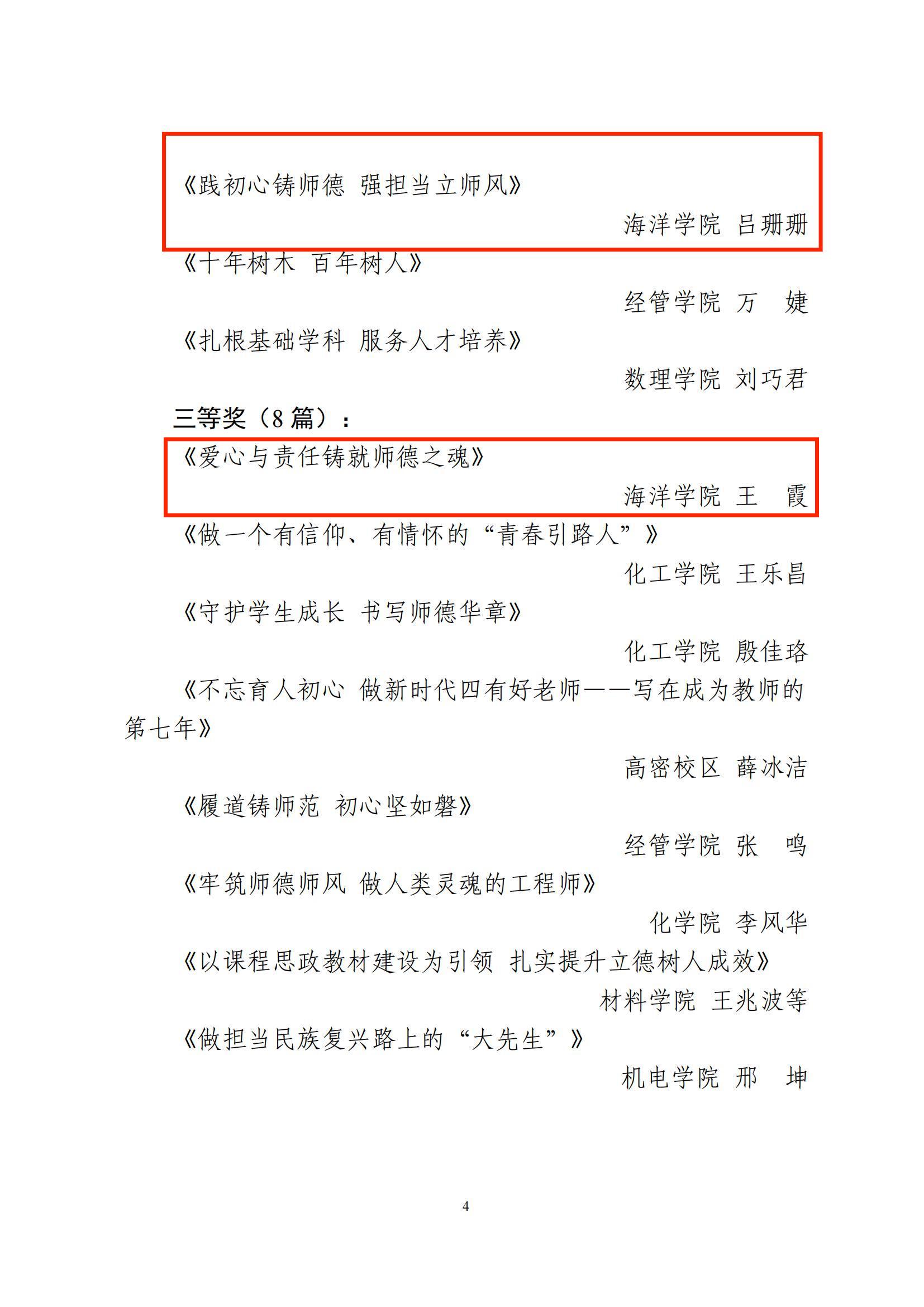 【海洋荣誉】海洋学院教师在“同心喜迎二十大 铸魂筑梦育新人”师德师风主题征文活动中获奖