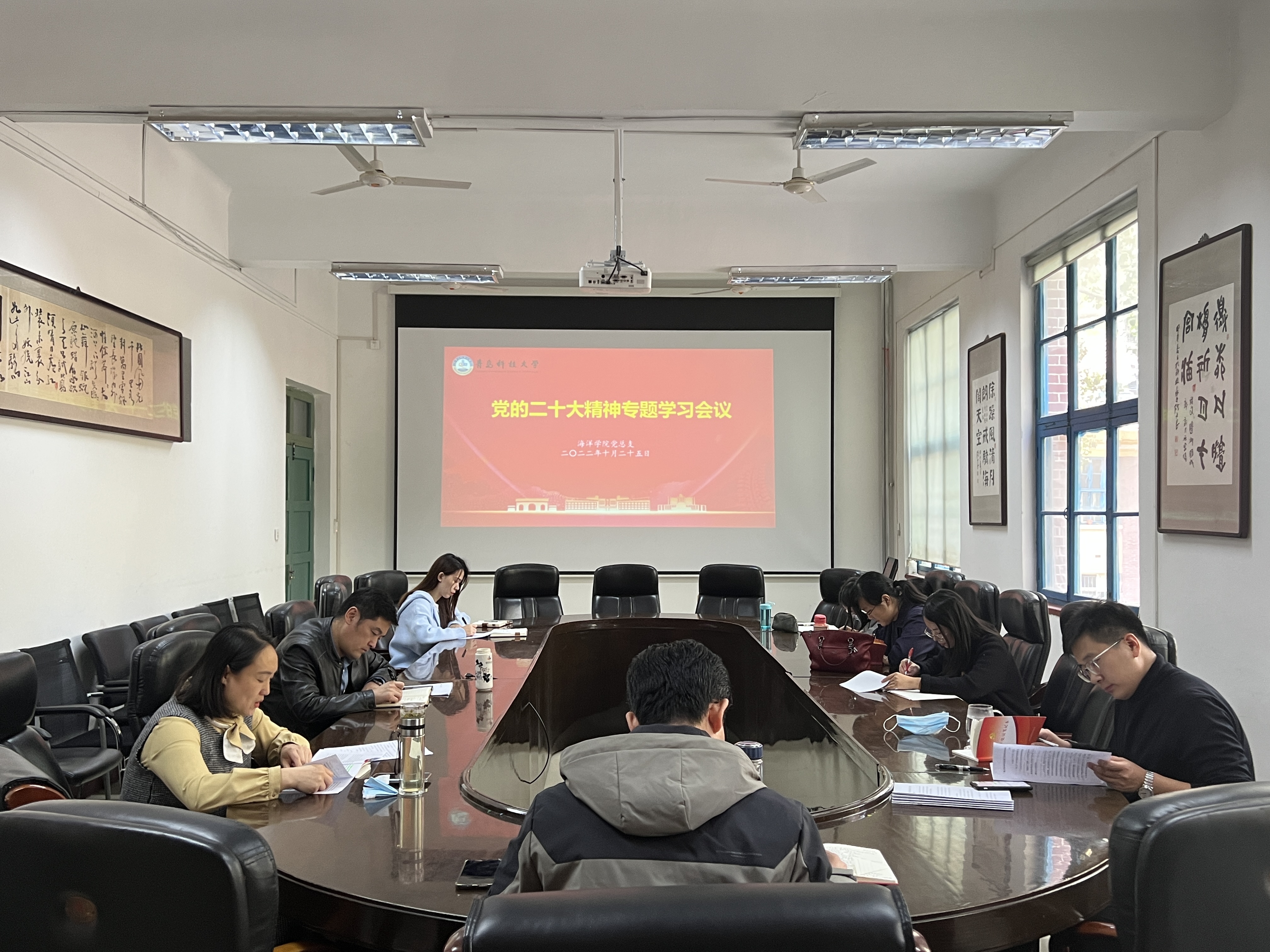10月25日下午,海洋学院党总支理论学习中心组于一政海洋学院会议室开展集体学习,理论学习中心组全体成员参与学习,海洋学院党总支书记周宪锋主持学习。