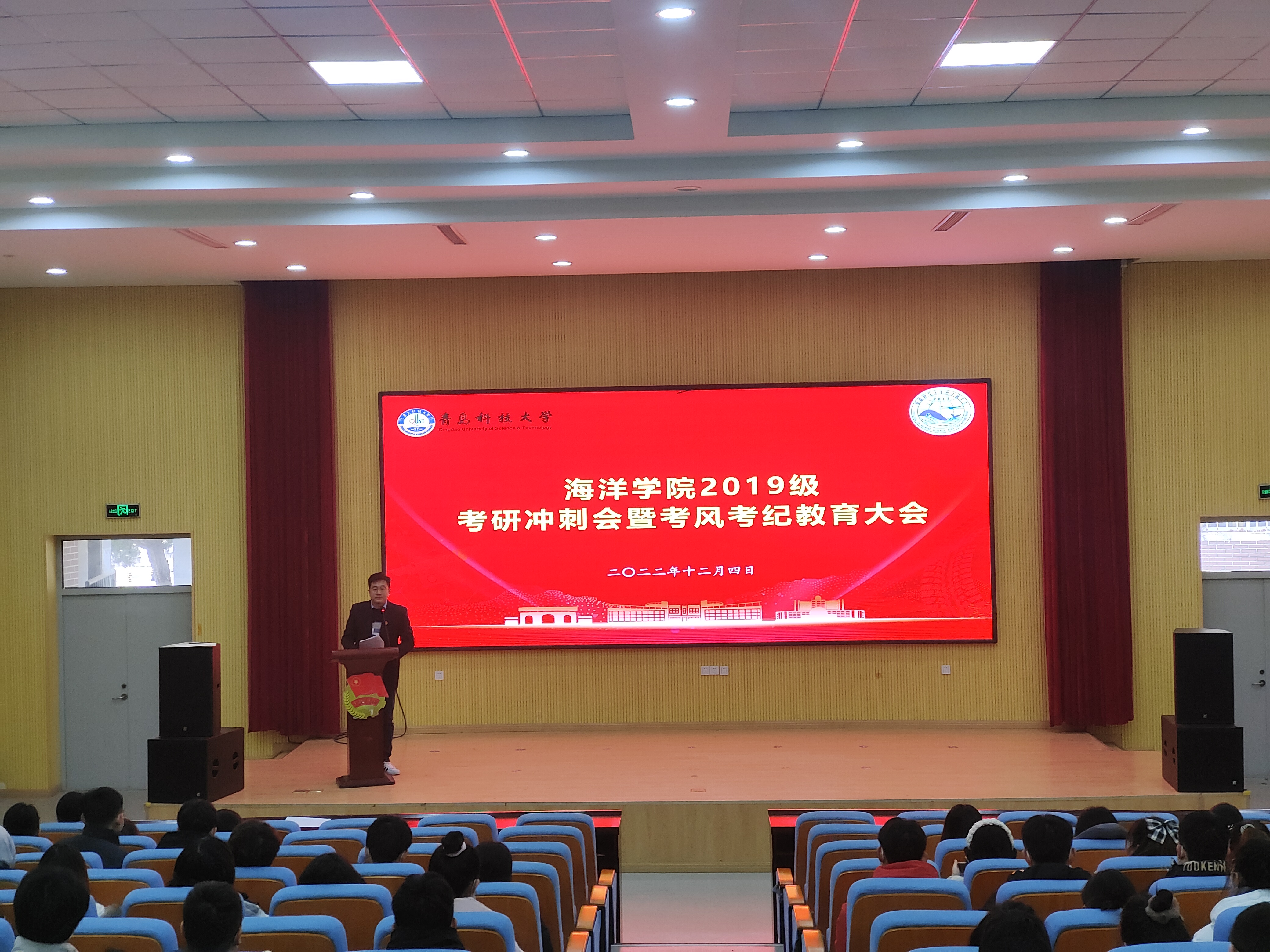 12月4日,海洋学院2019级考研冲刺会暨考风考纪教育大会在尚舜报告厅举行。2019级全体同学参会,会议由2019级辅导员李浩主持。
