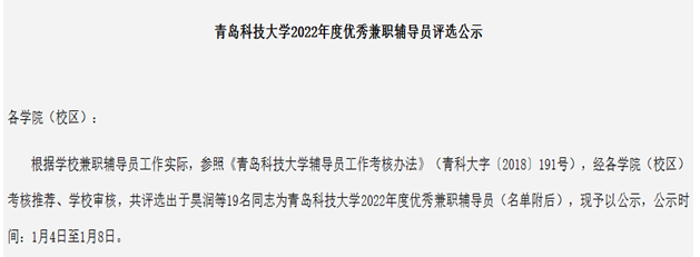 据悉,此次共有19名同志获评,旨在充分发挥优秀典型的模范带头作用,调动兼职辅导员的工作热情和积极性,加强学习,不断提高自身的综合素质,扎实工作,不断提升学生工作质量和水平,为培养堪当民族复兴重任的时代新人作出更大贡献。