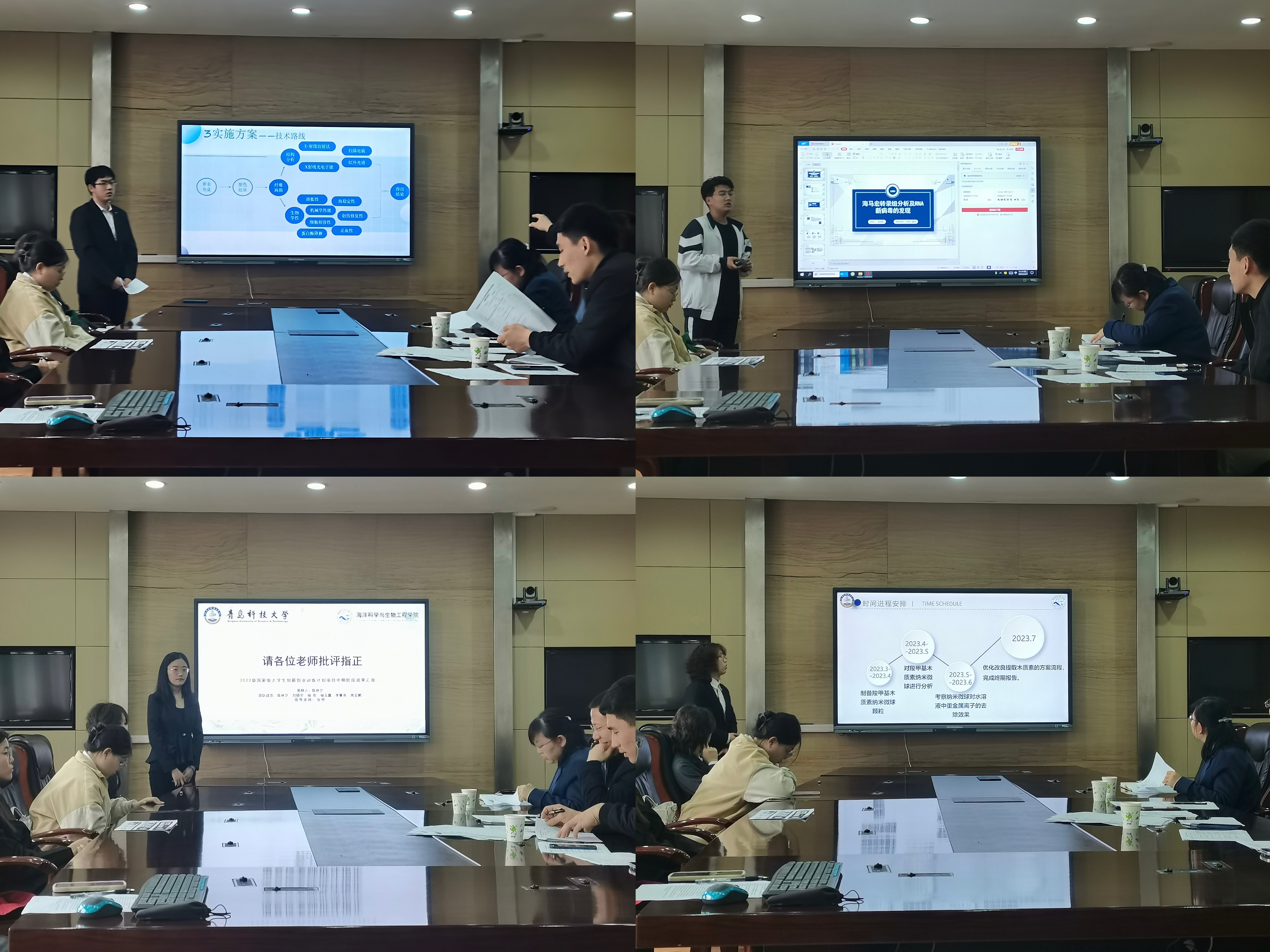 此次汇报共有13个项目,其中国家级项目5个,山东省项目4个,校级项目4个。答辩中各项目负责人采用PPT汇报的形式,向评委老师们详细介绍项目研究进展的情况、项目下一阶段的研究任务以及预期效果等内容,评委们就各项目中的创新点、可行性和社会价值等方面给予了肯定,同时也结合实际指出了项目开展过程中存在的问题,针对各组的现场展示进行疑难点提问和阶段性成果点评,并对研究重点和后续的研究方向提出了指导意见。