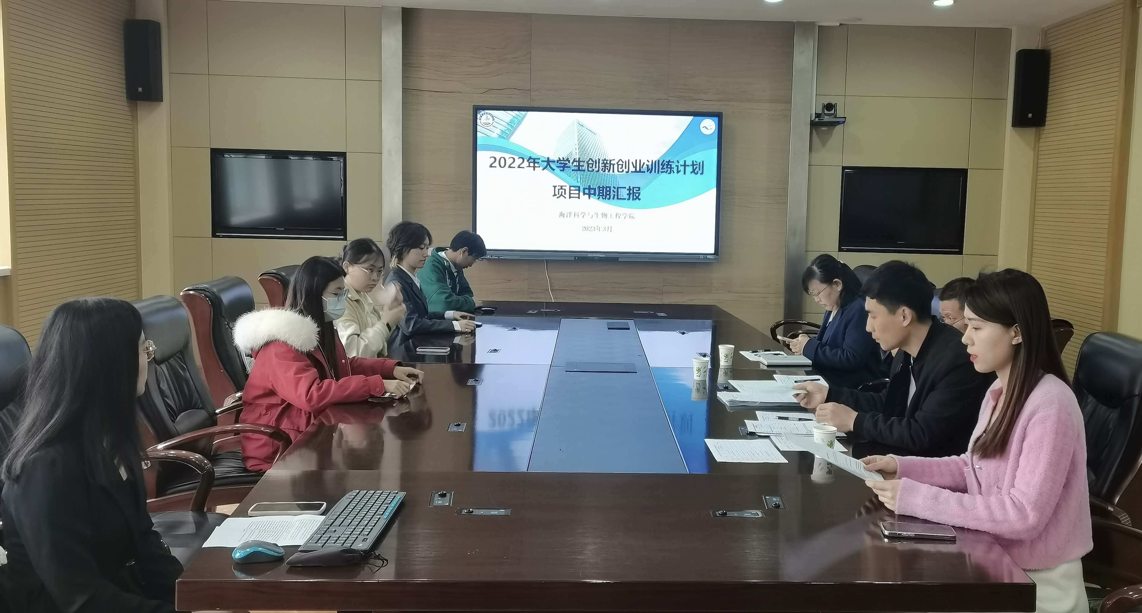 为加强海洋学院本科生创新精神的培养与实践训练,进一步推进学院拔尖创新人才的培养工作,推进“五个融合”,提高学生对于创新创业的热情,加强项目之间的交流。海洋学院于3月21日下午在一政第一会议室开展大学生创新创业训练项目中期答辩会。本次答辩会邀请到了学院孟尧老师、李俊峰老师和赵晓晨老师担任中期检查专家,会议由海洋学院学工办辅导员刘金岭主持。