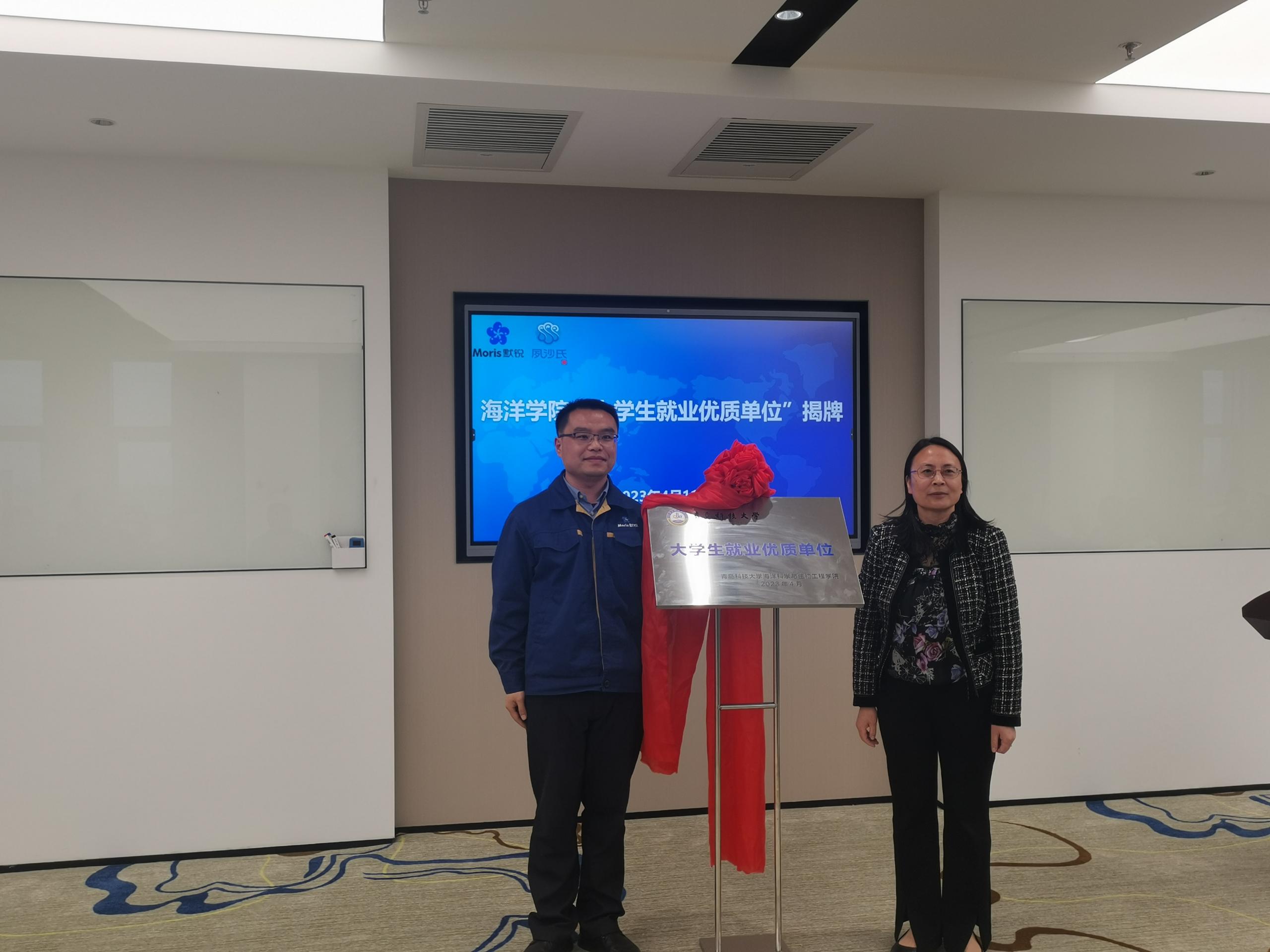 学校教务处处长兼海洋学院院长马翠萍与集团董事长杨树仁等进行深入交流,了解企业文化、产品特色、管理模式,参观各厂区运行情况。双方就技术攻关、共同开发课程、产教融合实训、校企导师联合授课等方面作了沟通研讨。马翠萍与集团轮值赋能总裁、高质量研究所所长邢海平为“大学生就业优质单位”揭牌。