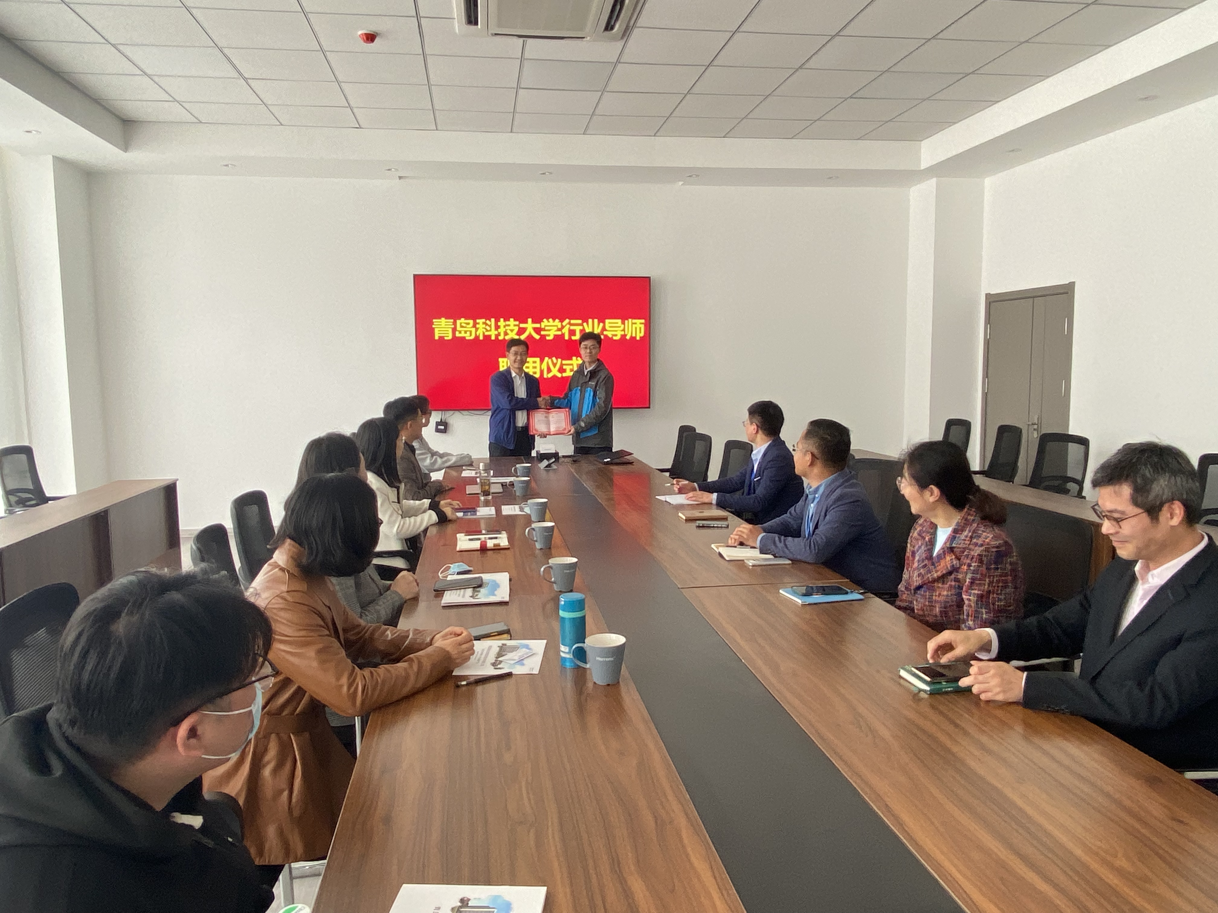 周宪锋为企业技术人员王宗科颁发行业导师聘书。