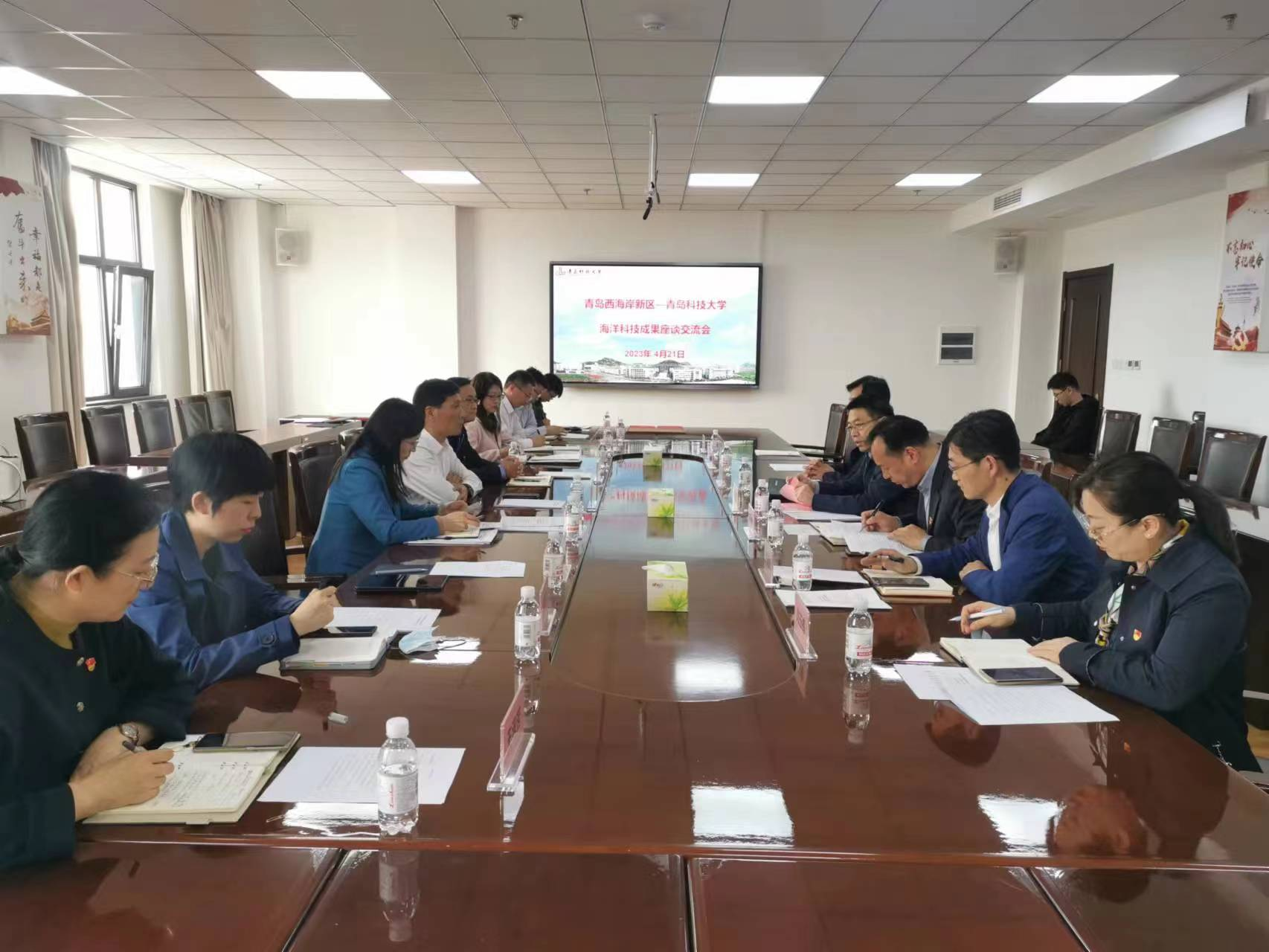 2023年4月21日下午,黄岛区海洋发展局党组书记、局长赵英民,区科创办、山东海洋集团有关负责人莅临williamhill中国开展调研座谈,校党委常委、副校长吕万翔、科技处处长李再峰、组织部正处级组织员孟昭国、海洋学院党总支书记周宪锋、科技处主任刘玉梅及海洋学院教师代表参会。会议围绕海洋科技成果转化进行交流座谈会,旨在深度探讨建立机关、企业与高校联学联研联创机制,推动校企城融合走深走实,签订联建共建协议书。