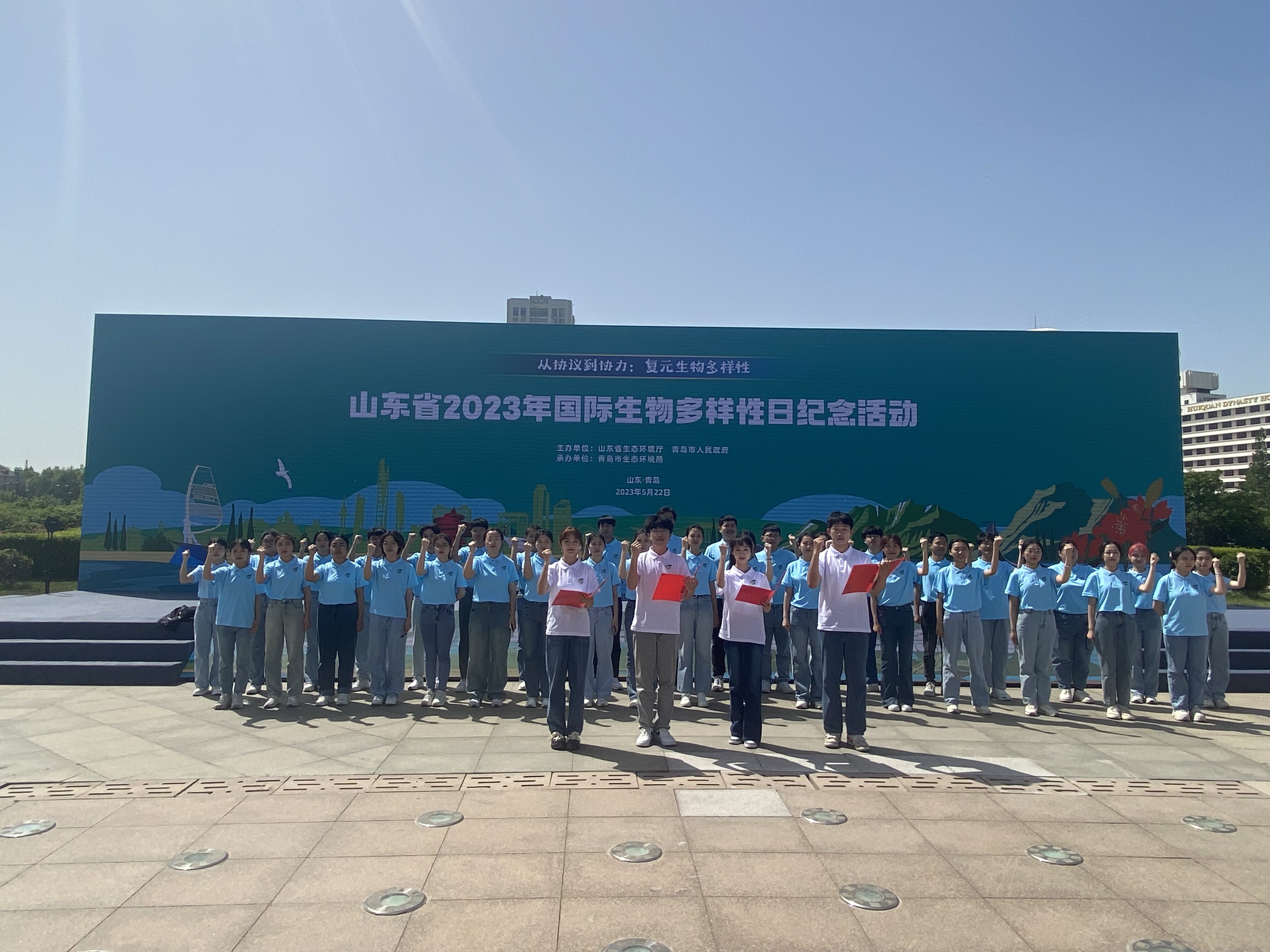 5月22日,由山东省生态环境厅、青岛市人民政府共同举办“5.22”国际生物多样性日纪念活动在汇泉广场举行,山东省生态环境厅党组书记、厅长侯翠荣,青岛市副市长于瑞波出席活动并致辞。海洋学院作为高校唯一代表参加纪念日活动,学院“小浪花”青年志愿服务队成员表演诗朗诵节目《从协议到协力,我们一起努力》。