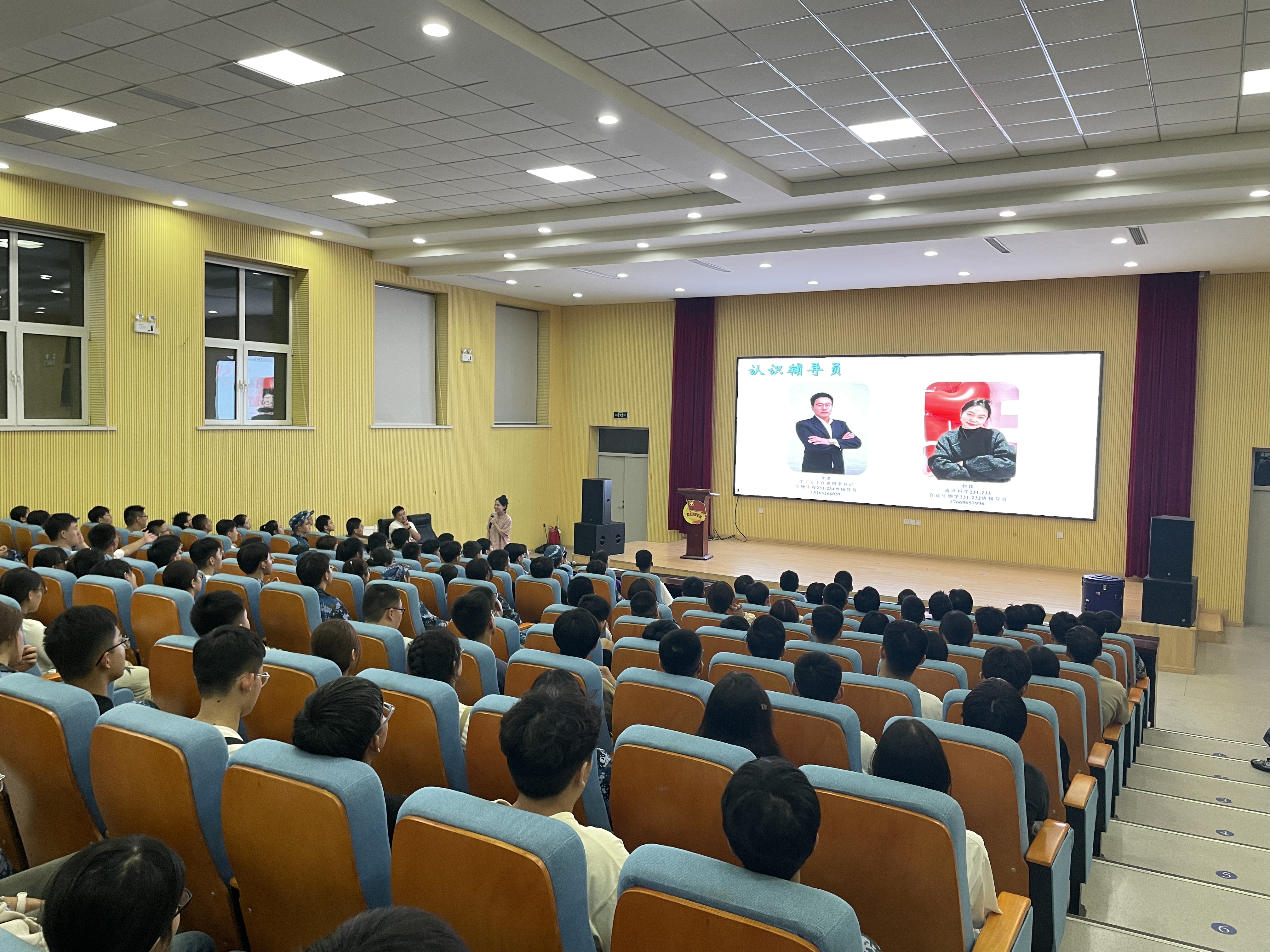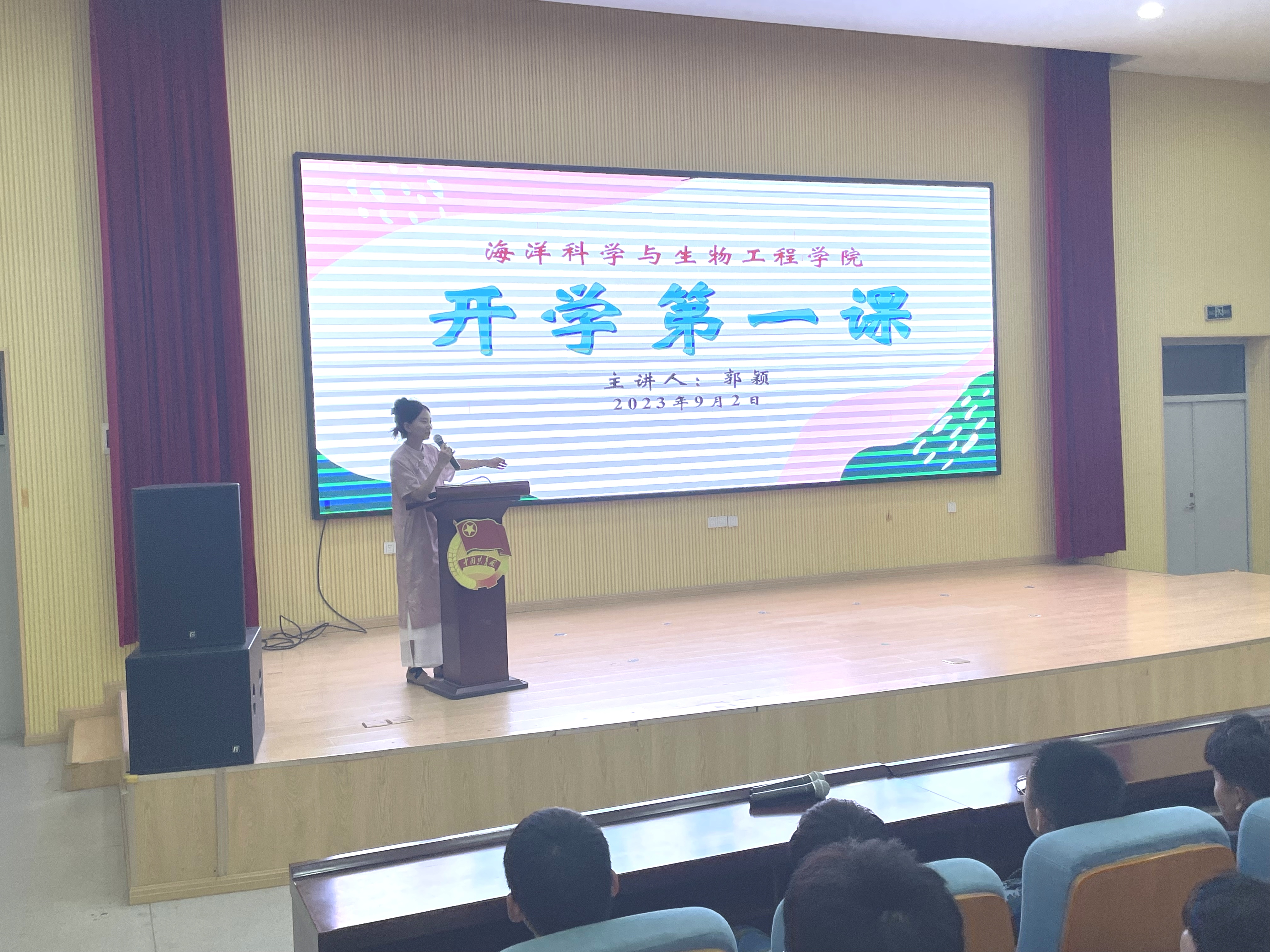 2023年9月2日,海洋学院2023级新生开学第一课在尚舜报告厅举行。2023级新生辅导员郭颖主持本次活动,海洋学院学工办主任兼团委书记李浩出席本次活动。
