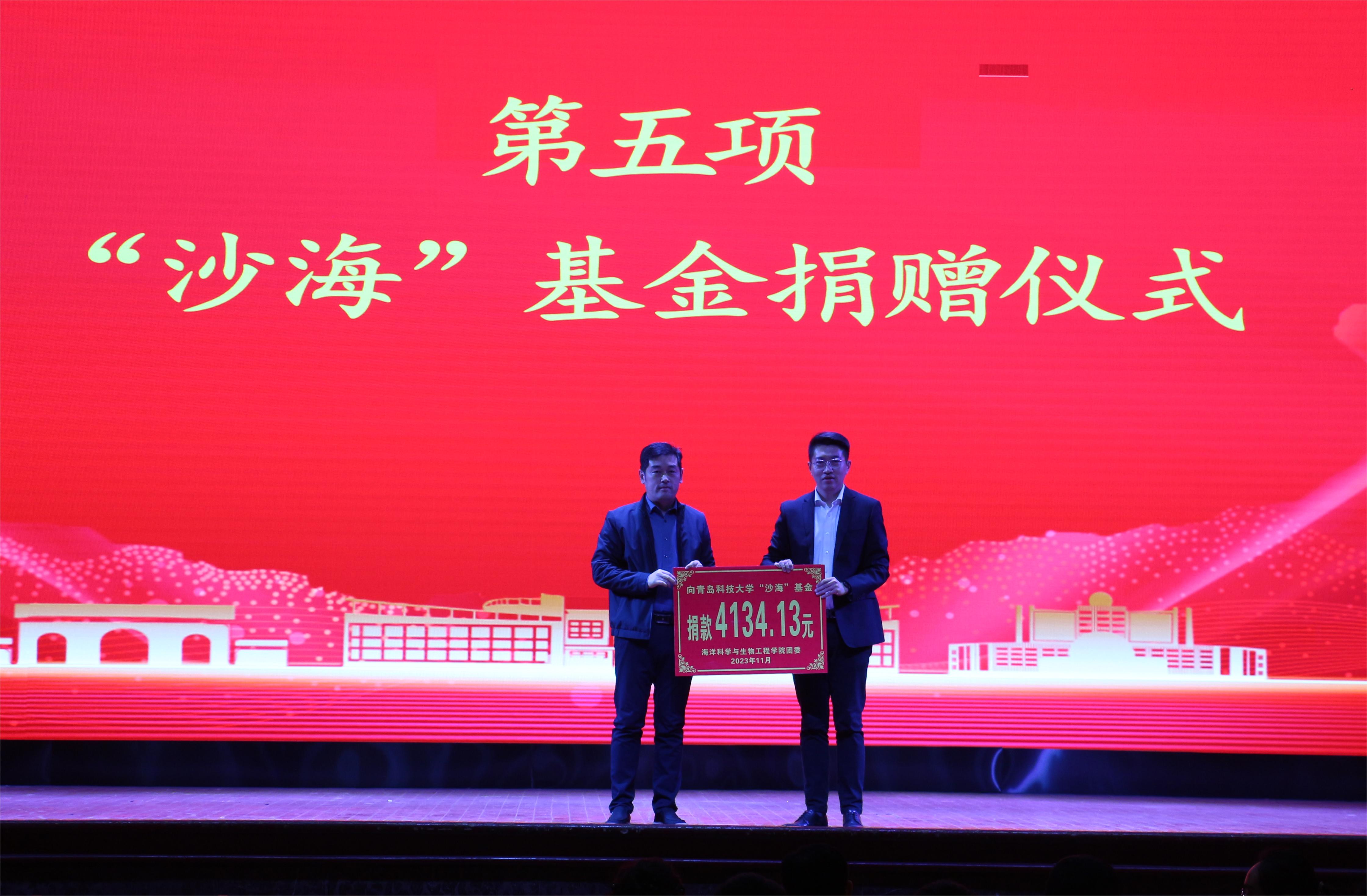 活动过程中举行了“沙海”基金捐赠仪式,李航代表校团委接受捐赠。