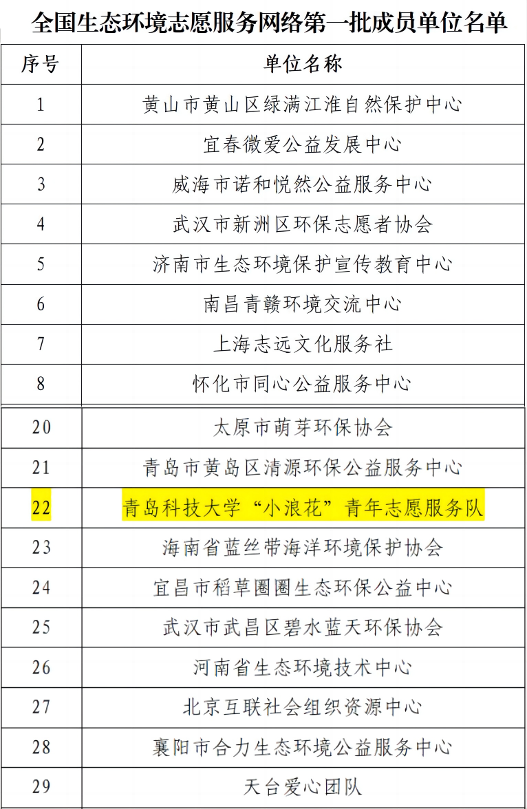 近日,生态环境部宣传教育中心公示了全国生态环境志愿服务网络第一批成员单位名单,全国146家申请单位成为网络第一批成员单位,其中海洋科学与williamhill威廉希尔的“小浪花”青年志愿服务队成功入选。