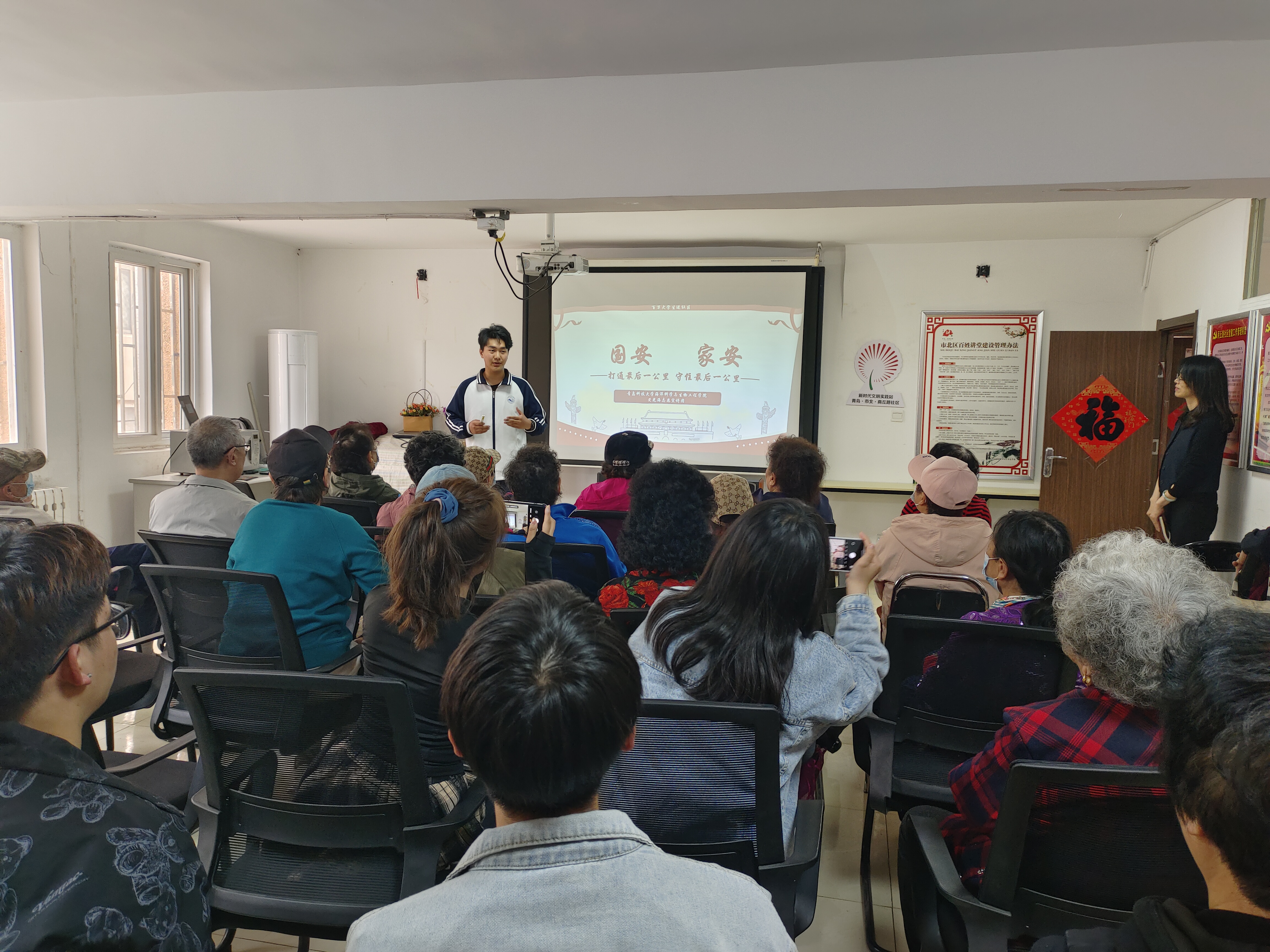 4月30日,海洋学院青年团员和“荧光海”志愿宣讲团成员前往市北区洛阳路街道商丘路社区开展“社区为桥 国安家安”国家安全教育宣讲活动。志愿者们以国土安全、军事安全、文化安全、社会安全为主题,为居民如何在日常生活中维护国家安全以及如何防范泄露国家安全的行为等方面进行了宣讲,获得社区居民一致赞许。