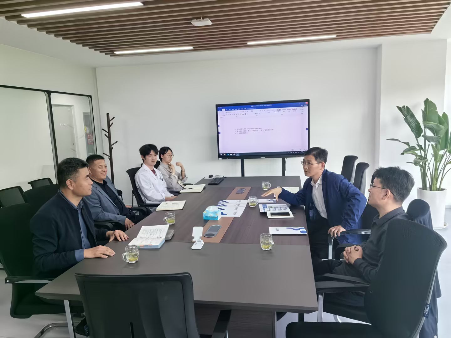 会前,陈良经理陪同海洋学院一行参观了企业的实验研发室和部分设备设施,详细介绍了企业的生物合成学研发平台和斑马鱼生物活性评价服务平台。