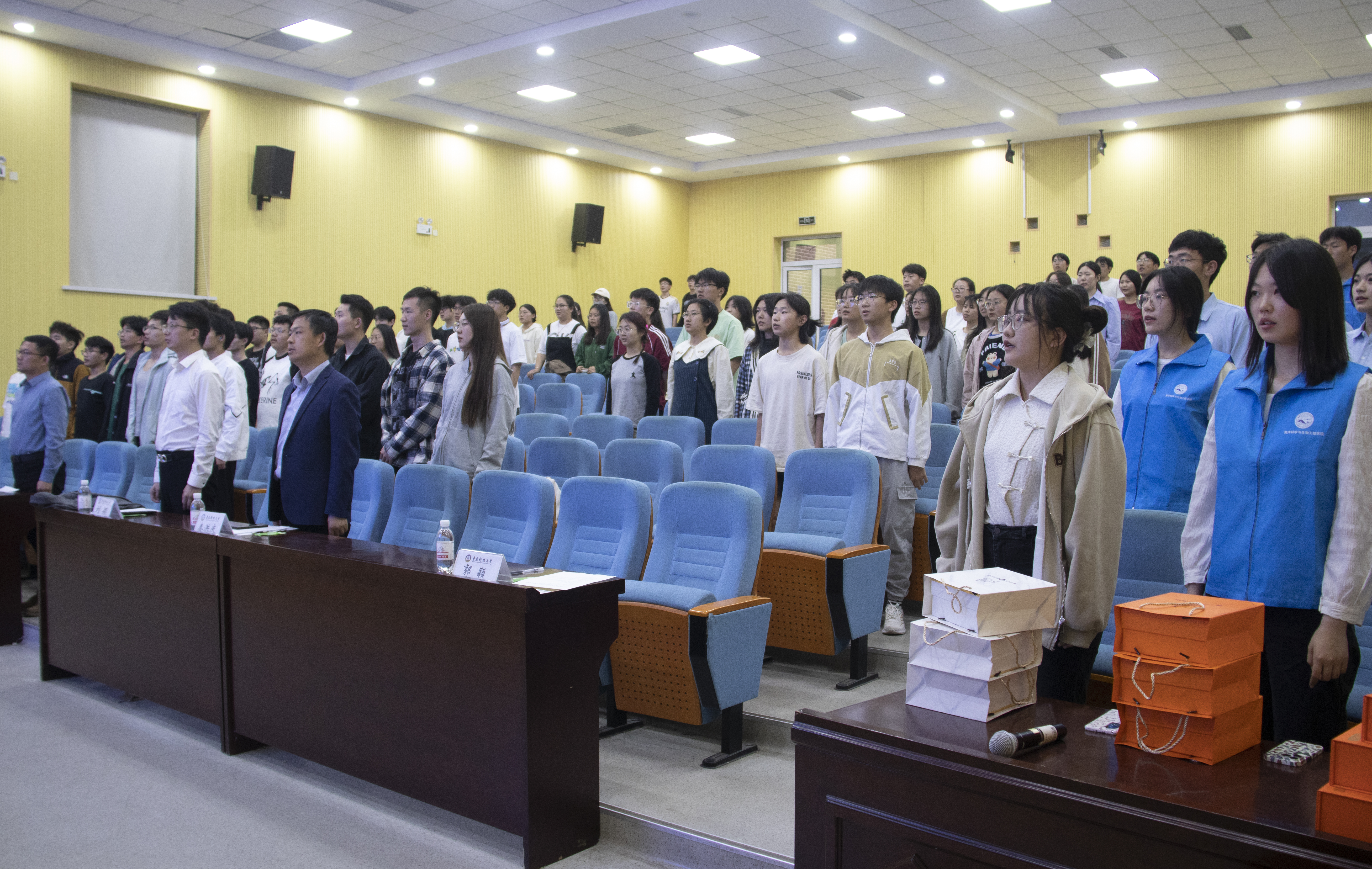 为积极培育和践行社会主义核心价值观,大力弘扬“奉献、友爱、互助、进步”的志愿者精神,表彰在过去的一年中在志愿服务和社会实践中表现积极的青年志愿者;同时,为表彰海院学子在校运动会中的突出表现,鼓励海院学子弘扬体育精神,勇担时代大任,争做有为青年。5月14日,海洋学院于尚舜报告厅举办“青春恰似火,奋斗正当时”优秀志愿者颁奖仪式暨运动会表彰大会,海洋学院党委副书记兼副院长刘浩、扬子江药业集团青岛地区负责人刘颖、海洋学院学工办主任兼团委书记秦洪庆、团委老师吕珊珊、车玉章、郭颖和学生代表参加活动,大会在庄严肃穆的国歌声中拉开序幕。