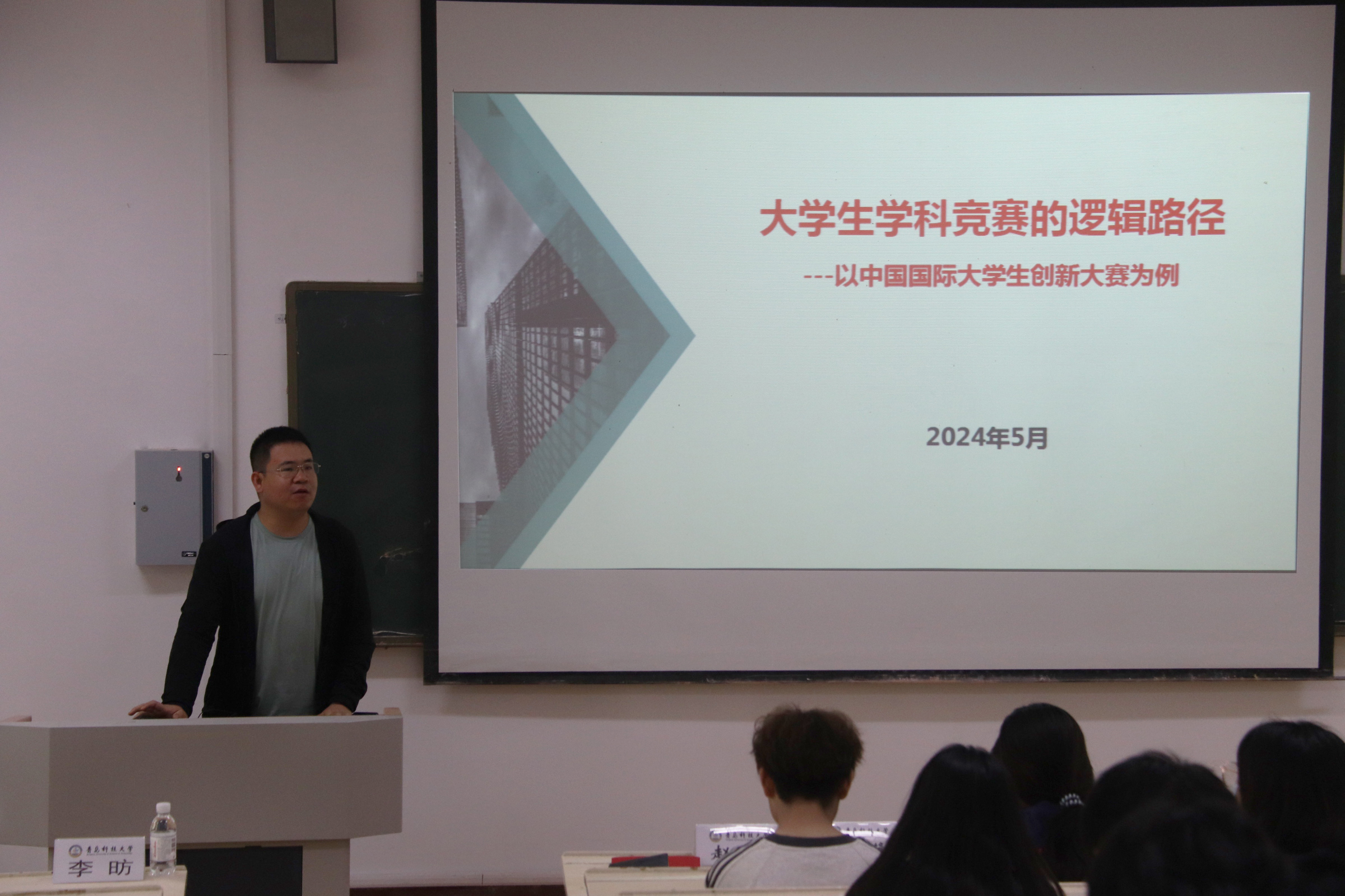 仪式结束后,刘夕升老师为同学们介绍了近几年来学校参加“互联网+”等大赛的成绩、学校对获奖团队和指导老师的奖励政策等,详细讲解了创新大赛的具体事宜,指出中国国际大学生创新大赛对大学生创新创业的重要性,激励同学们敢于创新创业。