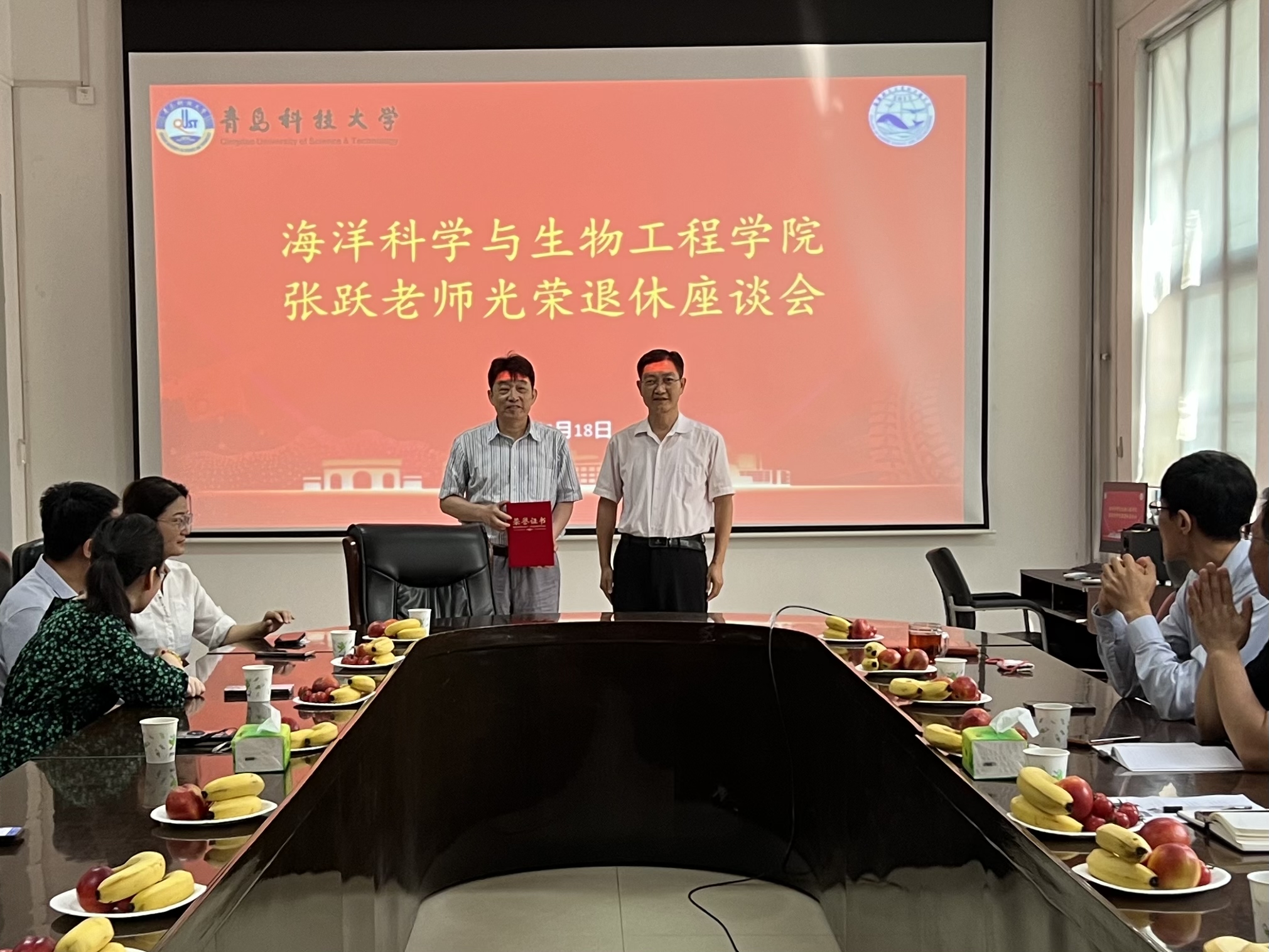 为充分感谢退休教师对教育事业的倾情付出,增强退休教师的归属感和幸福感,海洋学院于6月18日隆重召开张跃老师光荣退休座谈会。人事处副处长傅云磊,离退休处副处长代秀亭,学院领导班子、教师代表和学生代表们出席本次座谈会。