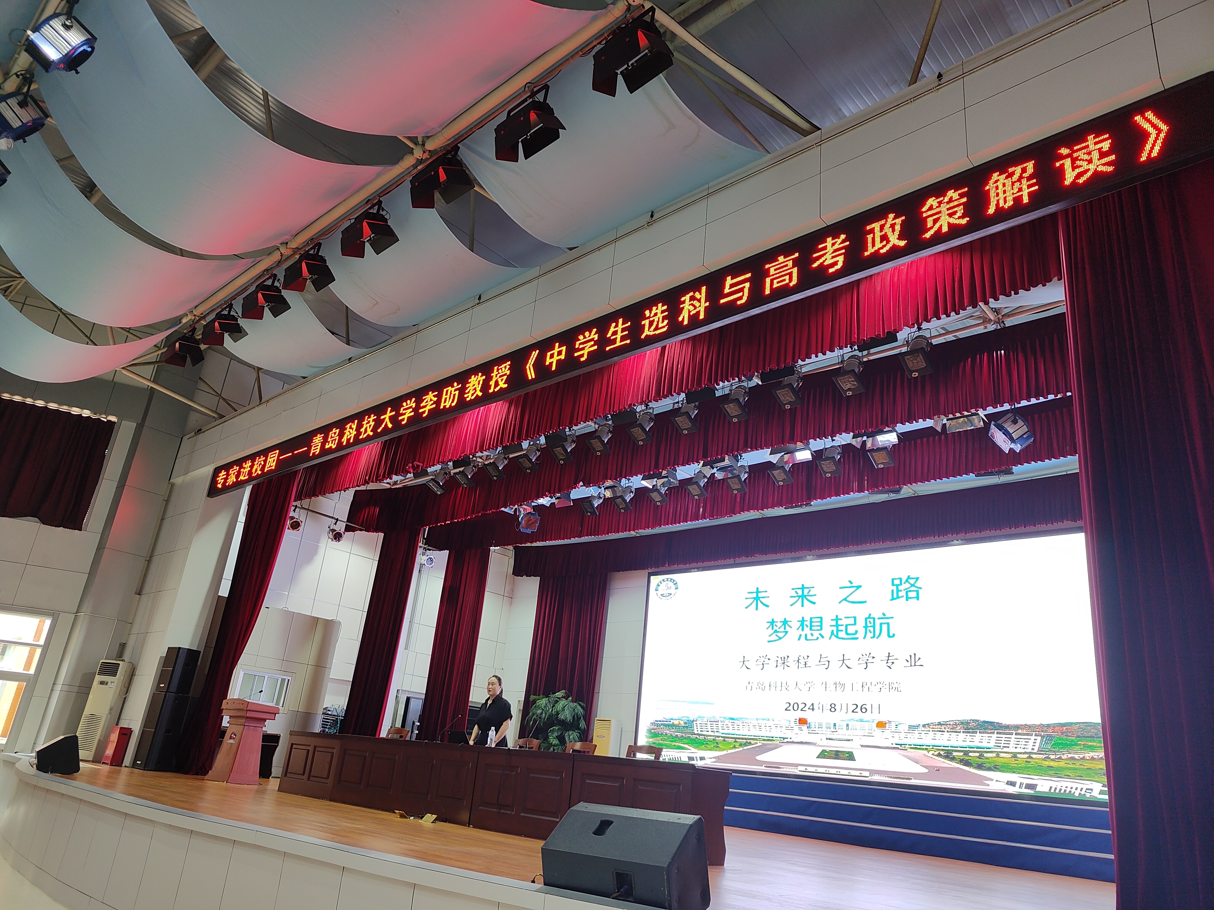 李昉作题为《中学生选科与高考政策解读》的科普讲座。从高中选科技巧、职业规划、专业选择等方面向同学们进行了深入的讲解。同时,李昉向高一学生具体介绍了我校课程设置、专业特色、就业前景以及近年来的招生情况。